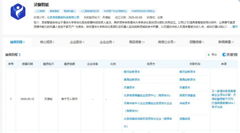 据天眼查,灵御智能以“打造具身智能实用化标杆,让具备可靠灵活操作能力的机器人走进千家万户” 为使命,依托清华大学自动化系团队在机器人运动控制领域的技术积累,以无缝协作的人机混合智能为切入点,成功打通L0到L2到L4的机器人完整智能进化路径,并构建了包括人侧数据采集、机侧灵巧执行器及智能操作平台在内的通用操作整体解决方案。