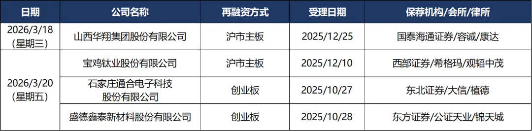 本周共4家再融资审核企业: