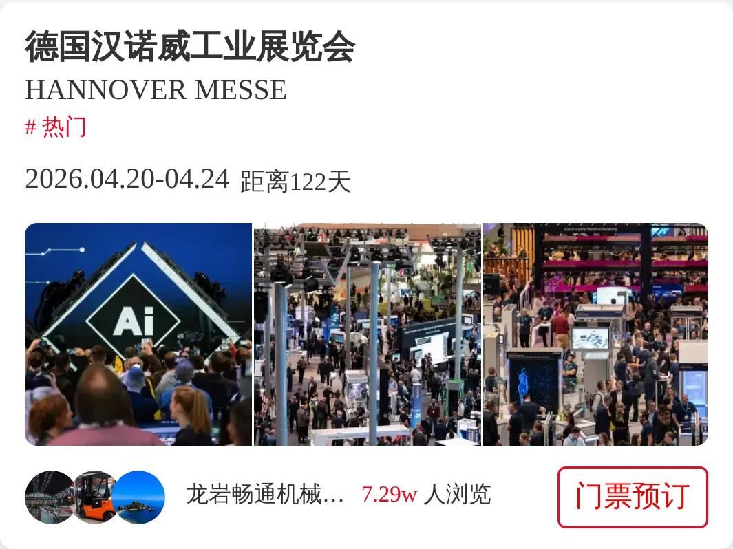 2026年德国汉诺威工业展览会(HANNOVER MESSE)将于4月20-24日在德国汉诺威展览中心举办。是世界工业贸易的“晴雨表”!全球工业技术发展的风向标。始创于1947年8月,每年定期在汉诺威国际展览中心举办,被公认为是联系全世界技术领域和商业领域的重要国际活动之一,引领着世界工业的创新与发展。