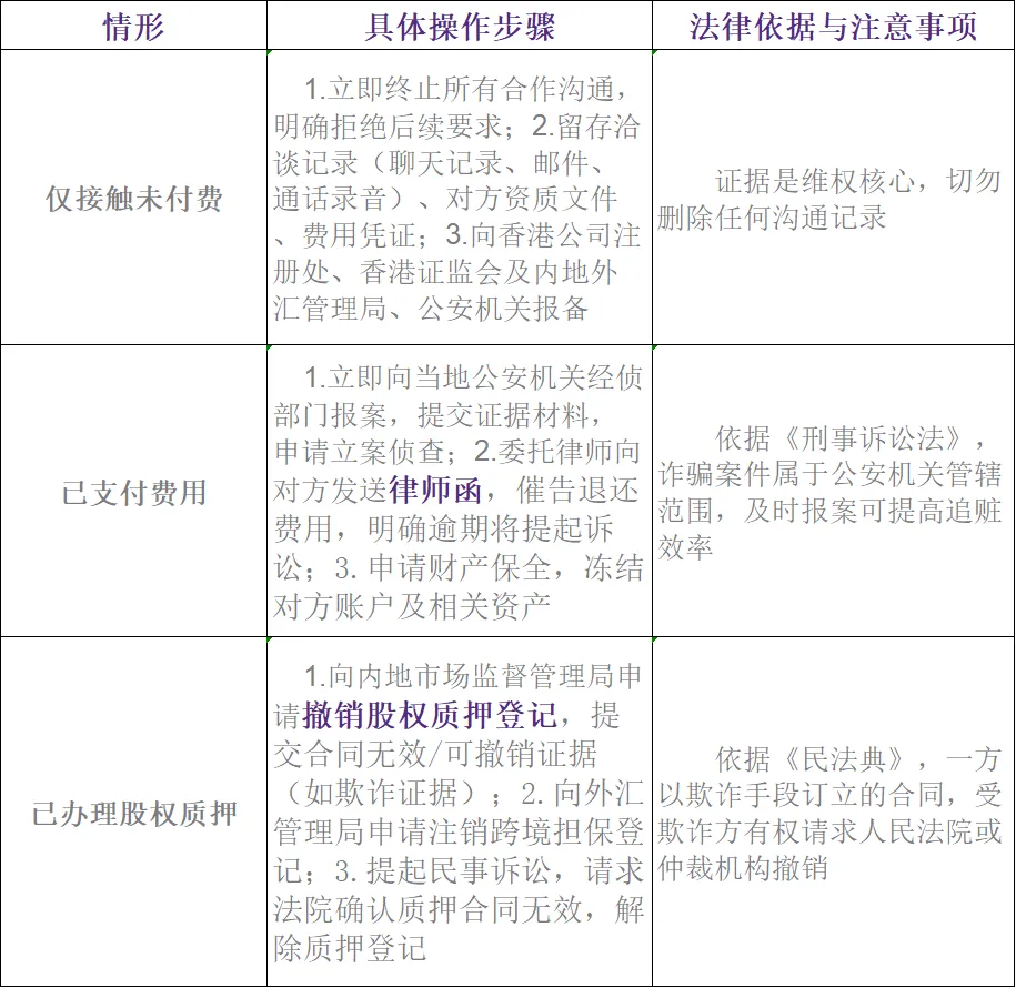 权威案例佐证:2025年某境内民营企业被骗225万元,资金方以“融资通道”为由要求其收购香港空壳公司,支付16万律师费、150万调汇费、42.8万监管费后,强制要求办理双层股权质押,完成内地质押后以“香港质押无法实现”为由拒放款;国家外汇管理局2020年典型案例显示,香港财务公司以3000万元融资为诱饵,要求境内企业注册空壳公司并股权质押,收取评估、评审费后直接失联。