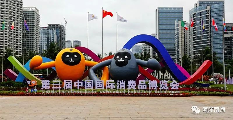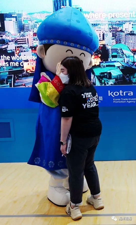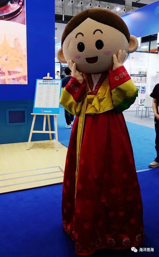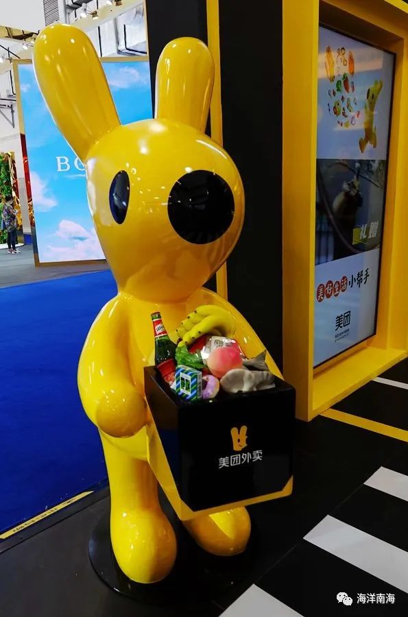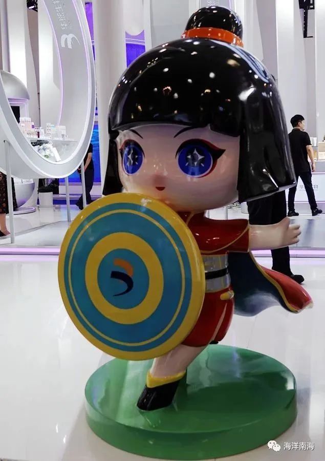 第三届消博会上,依旧可见一些企业吉祥物动漫公仔的亮相,例如京东、天猫、美团等。