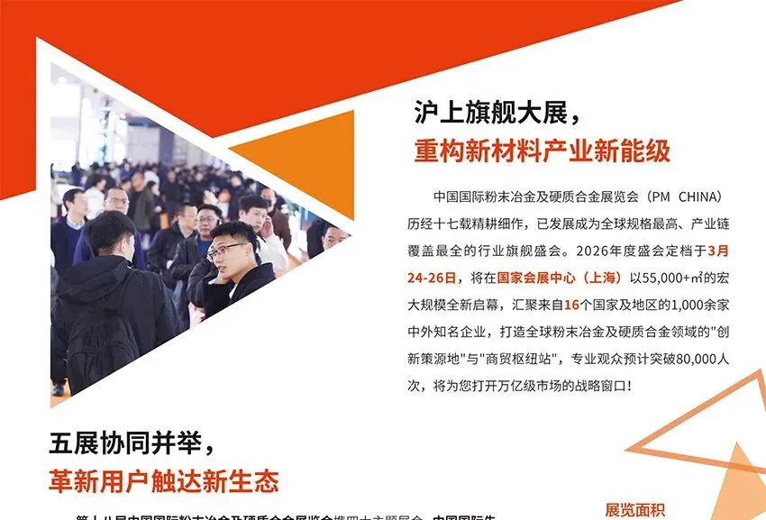 中国国际粉末冶金及硬质合金展览会(PM CHINA)历经十七载精耕细作,已发展成为全球规格最高、产业链覆盖最全的行业旗舰盛会。