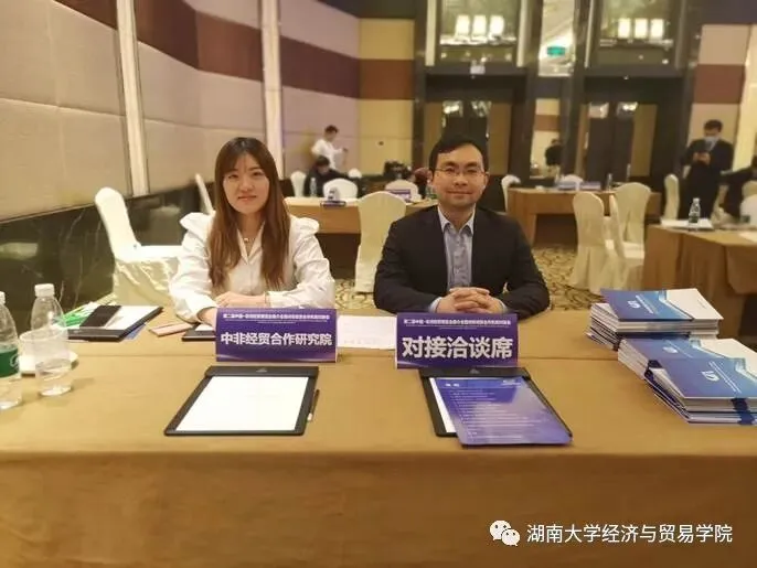 会后,湖南大学经济与贸易学院副院长、中非经贸合作研究院副秘书长肖皓在对接洽谈席同相关企业代表就深化合作进行深入务实交流。