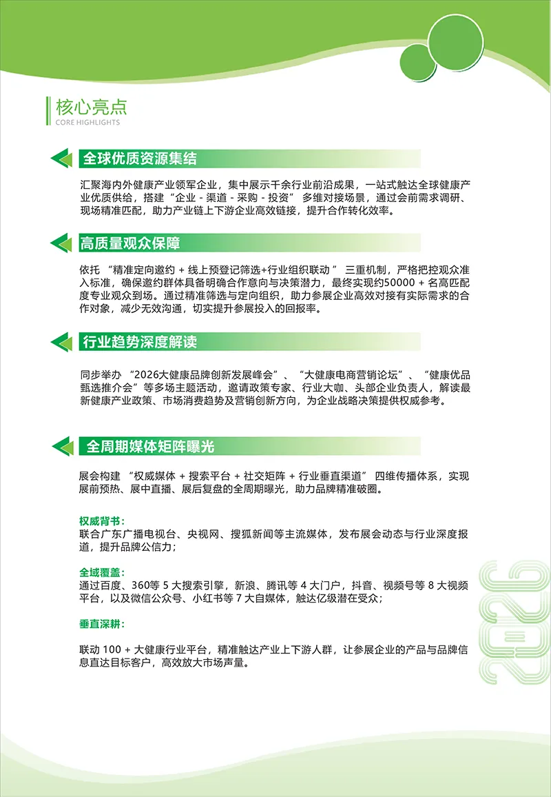 健康是人类不懈探索的核心命题,健康产业作为全球极具增长潜力的“朝阳赛道”,借技术创新与需求升级的双重驱动,正成为拉动经济、优化产业结构的关键引擎。2026年4月1-3日,2026HCE广州国际健康产业博览会将在广州保利世贸博览馆举办。本届展会将汇聚海内外领军企业,全方位展示大健康领域的前沿成果,致力于打造一个高效联动的产业交流平台,有效促进企业间的信息互通与资源深度整合,为健康产业的高质量发展注入源源不断的新活力。