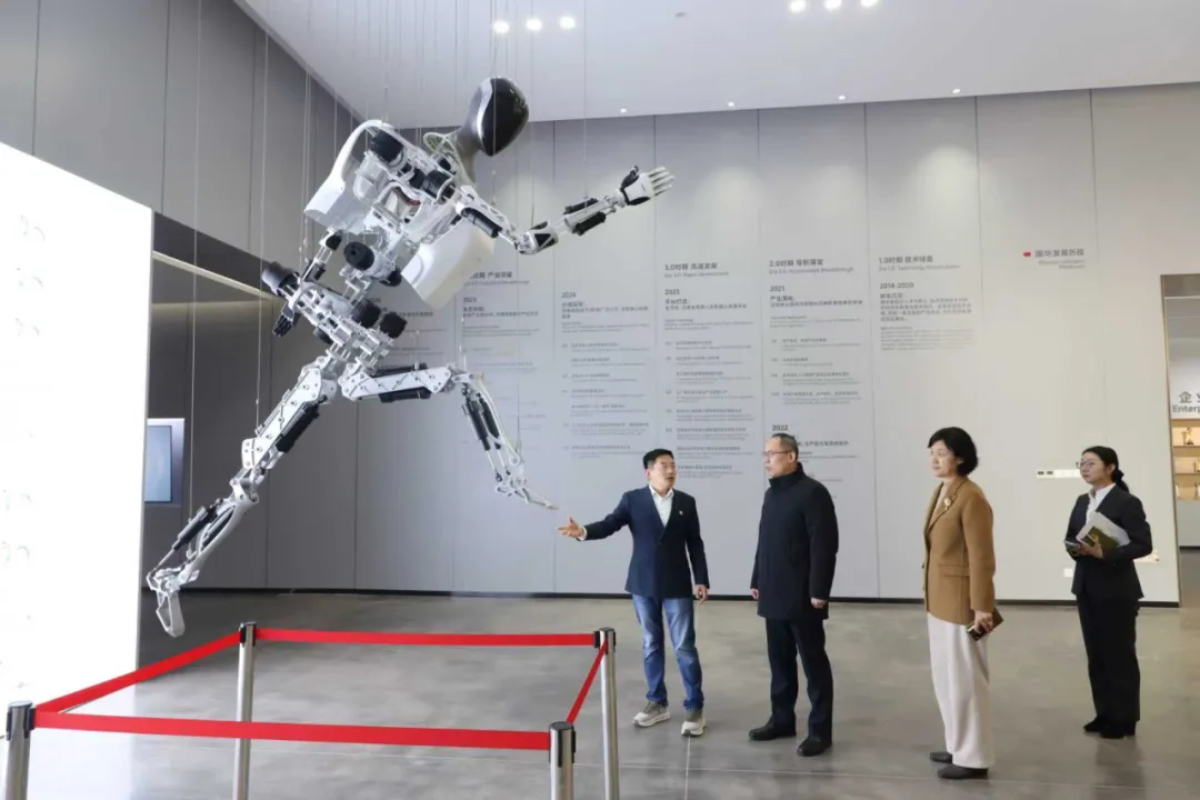 走访期间,集团一行在企业负责人陪同下,先后深入企业展厅、生产测试线及研发中心,详细了解企业在高精度谐波减速器、行星滚柱丝杠等核心传动部件的技术攻关情况,细致观摩了旋转/直线关节模组及高性能人形机器人本体的产业化进展。每到一处,集团一行与企业一线人员频频交流,近距离感受企业深耕底层技术、聚力科技创新的蓬勃脉动。