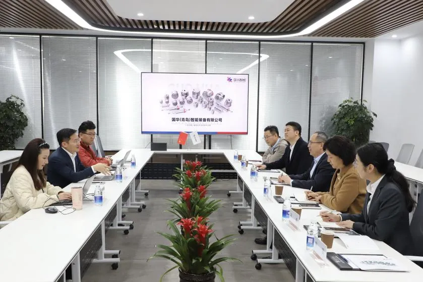 3月16日,青岛融资担保集团党委书记、董事长黄应胜,党委委员、副总经理王荣带领业务团队,深入走访国华(青岛)智能装备有限公司(以下简称“国华智能”),通过实地调研企业发展现状、精准对接融资需求等实际行动,贯彻落实“干部作风建设年”工作部署,切实把作风建设成效转化为服务民营企业的具体实践,为培育优质科创企业、建设科创大走廊积极贡献担保力量。