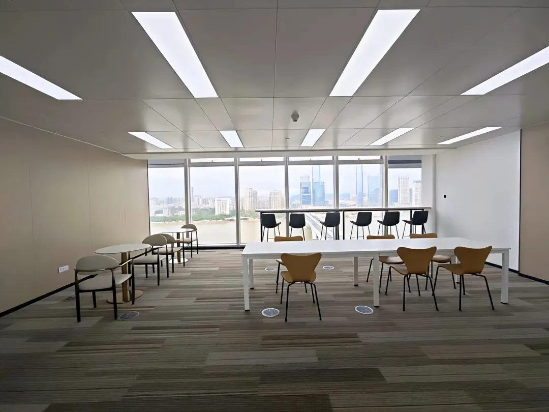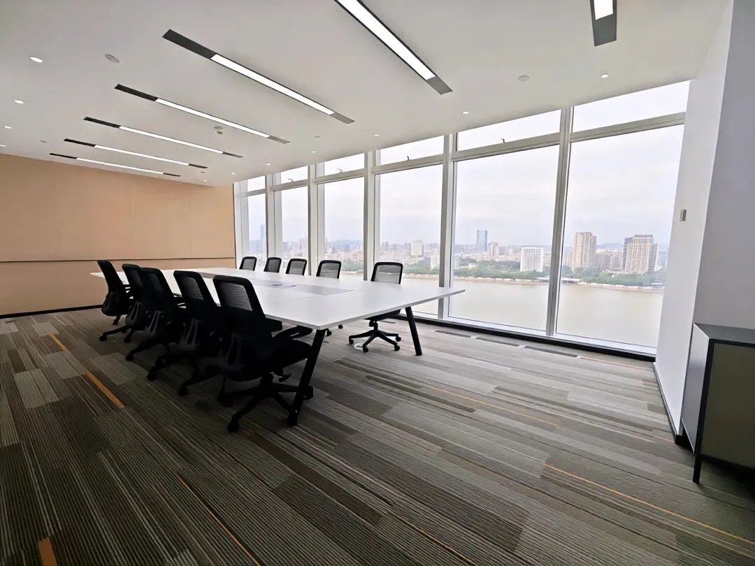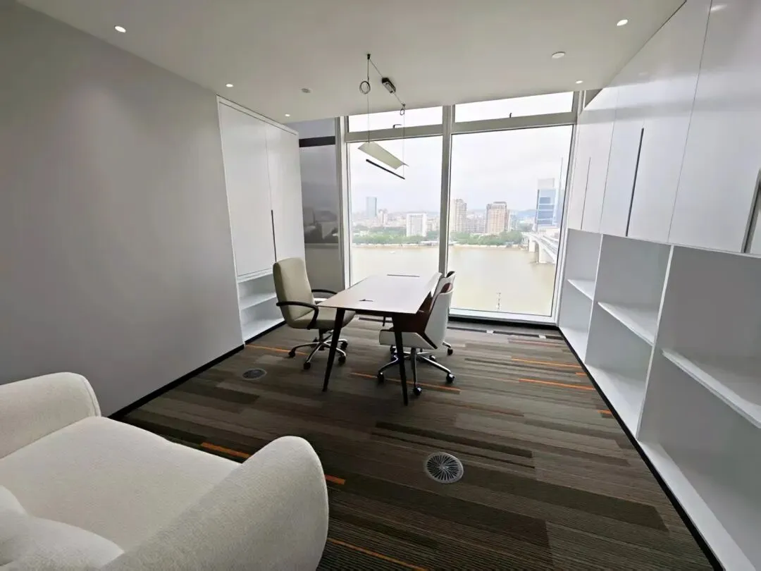 •优势:北向全线望江、4个房间,配置会议桌、茶桌、洽谈桌、办公区、茶水间等