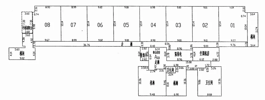 标准层面积:主楼1,800㎡,裙楼2,965㎡