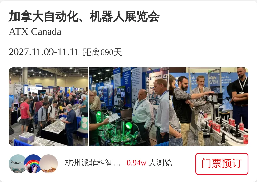 2027年11月9-11日,期待与您不见不散!加拿大自动化展览会(ATX Canada)是加拿大首屈一指的自动化盛展。