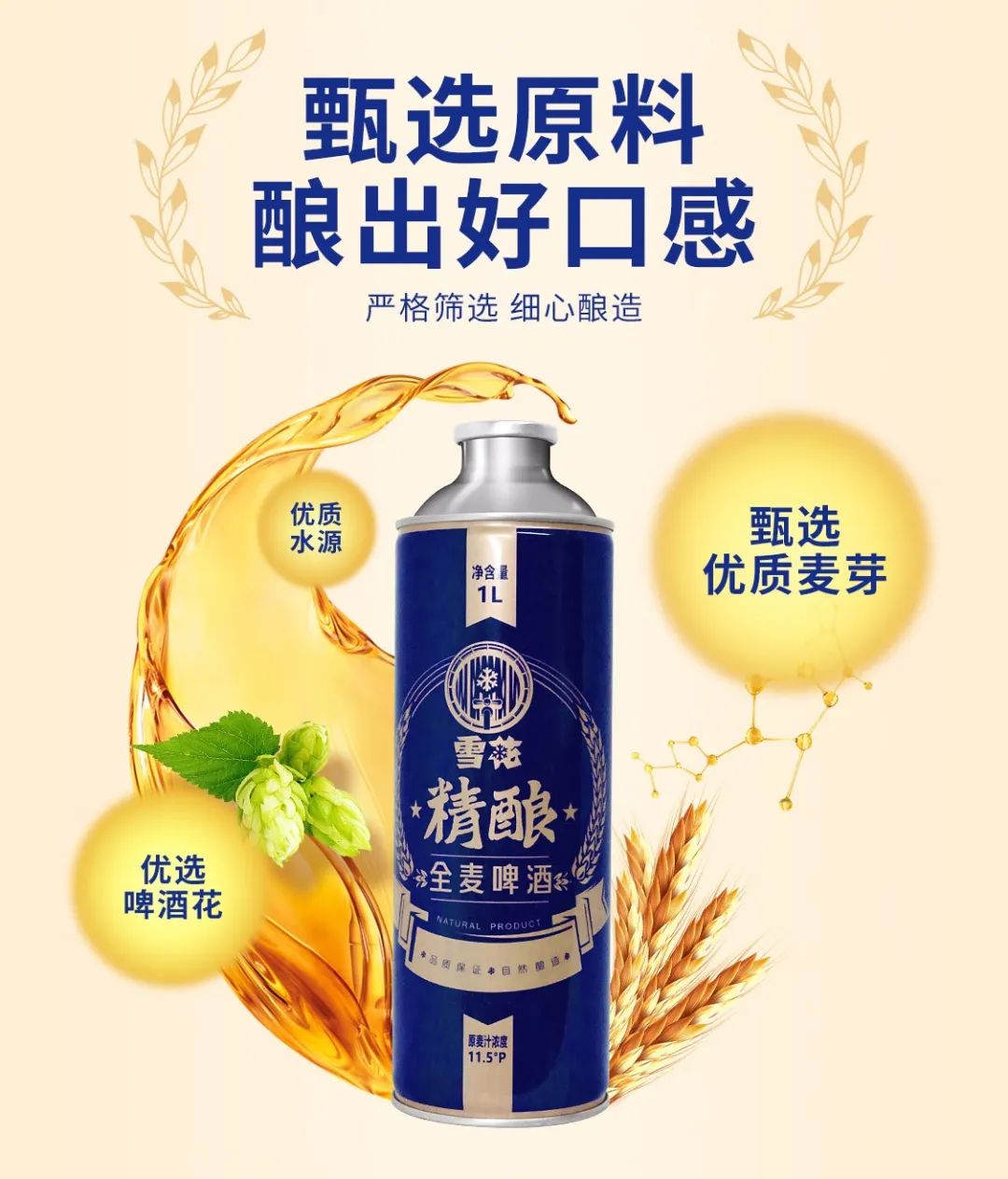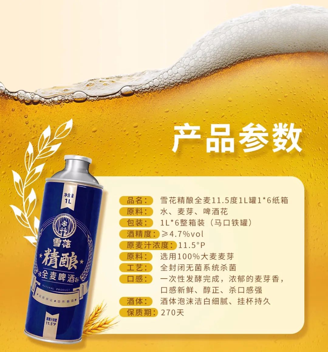 雪花啤酒(Snowbeer)全麦精酿11.5度1L*6罐 【全麦芽大容量】