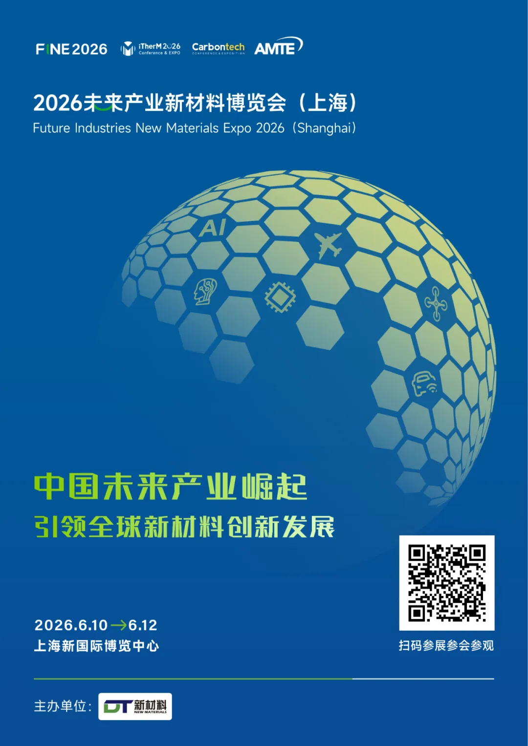 2026未来产业新材料博览会(“FINE 2026”),由「DT新材料」主办的第十届国际碳材料产业博览会(Carbontech 2026)、热管理产业博览会(iTherM 2026)和新材料科技创新博览会(AMTE 2026)三大展重磅升级而来,旨在打造一个以未来产业终端为引领、立足国际视野的新材料领域一站式交流、合作与采购平台标杆特色展会。