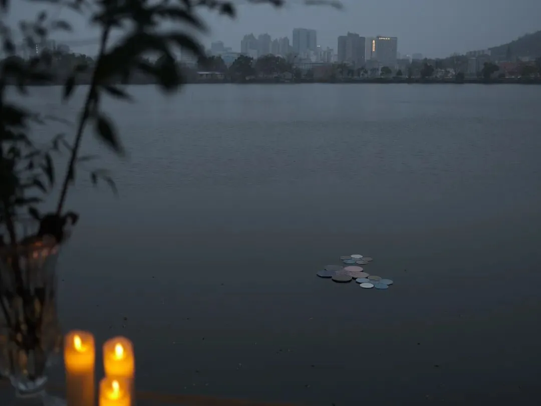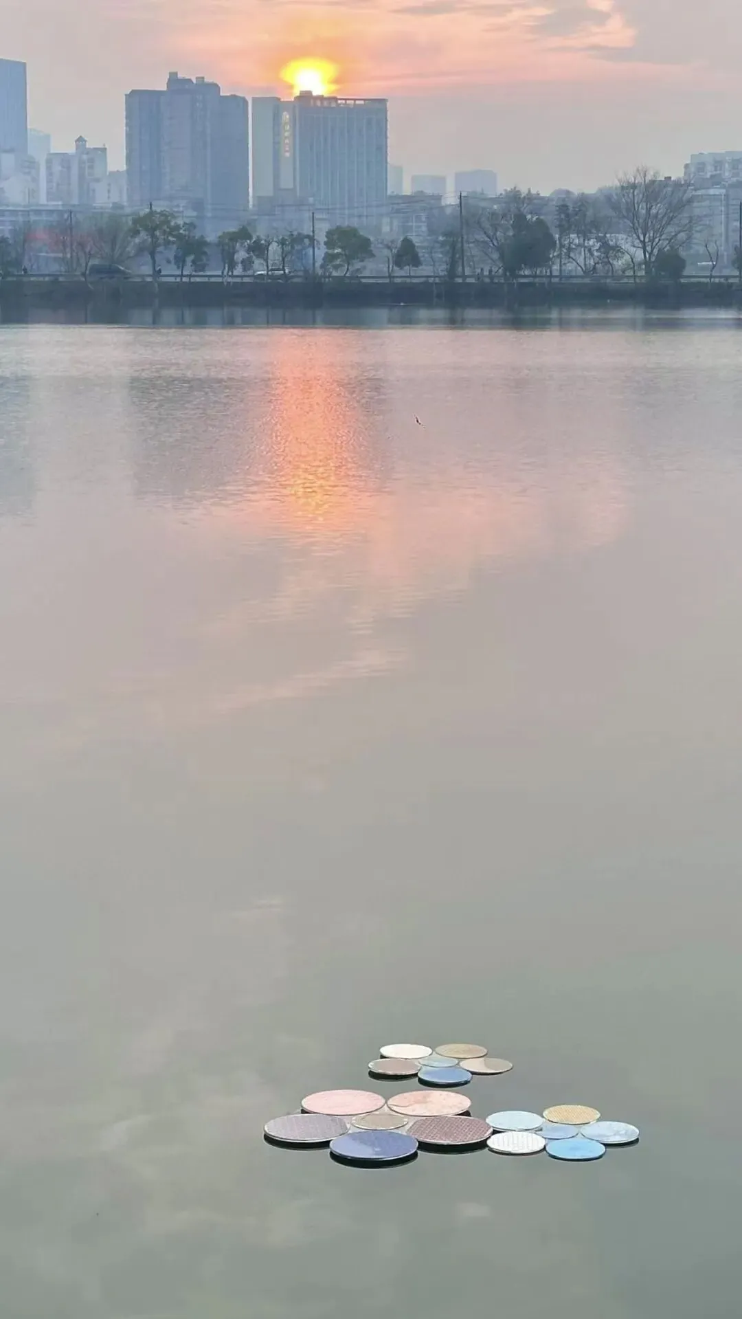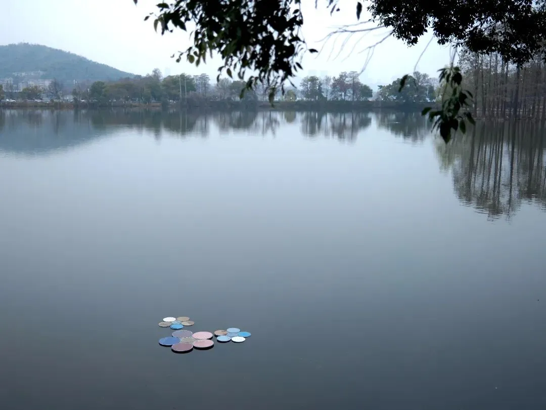 在室外临湖的水中《衍射-1》装置,