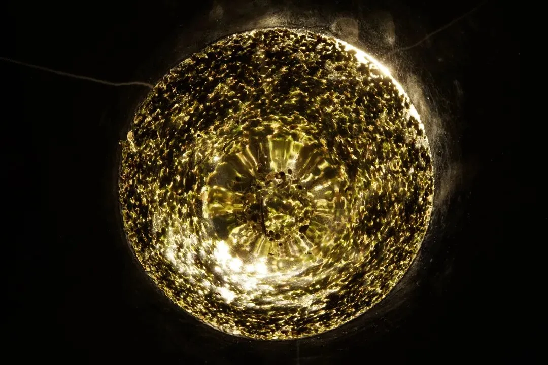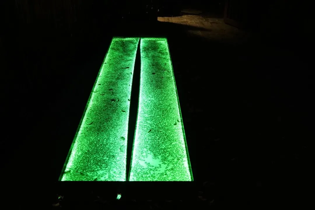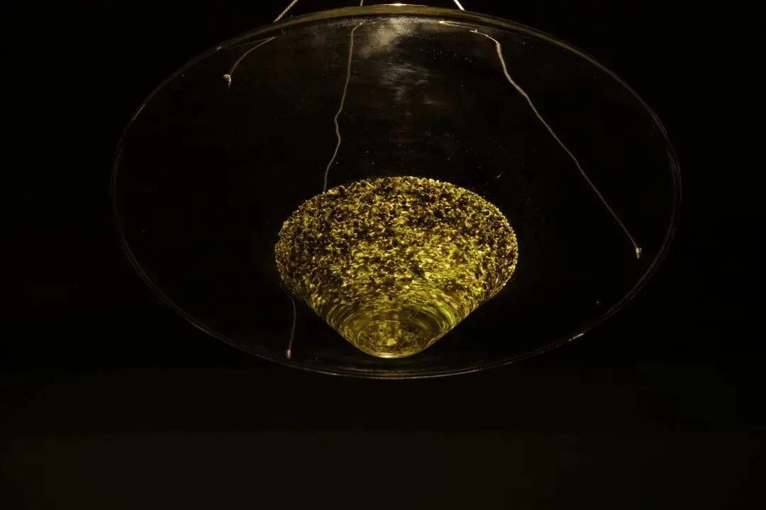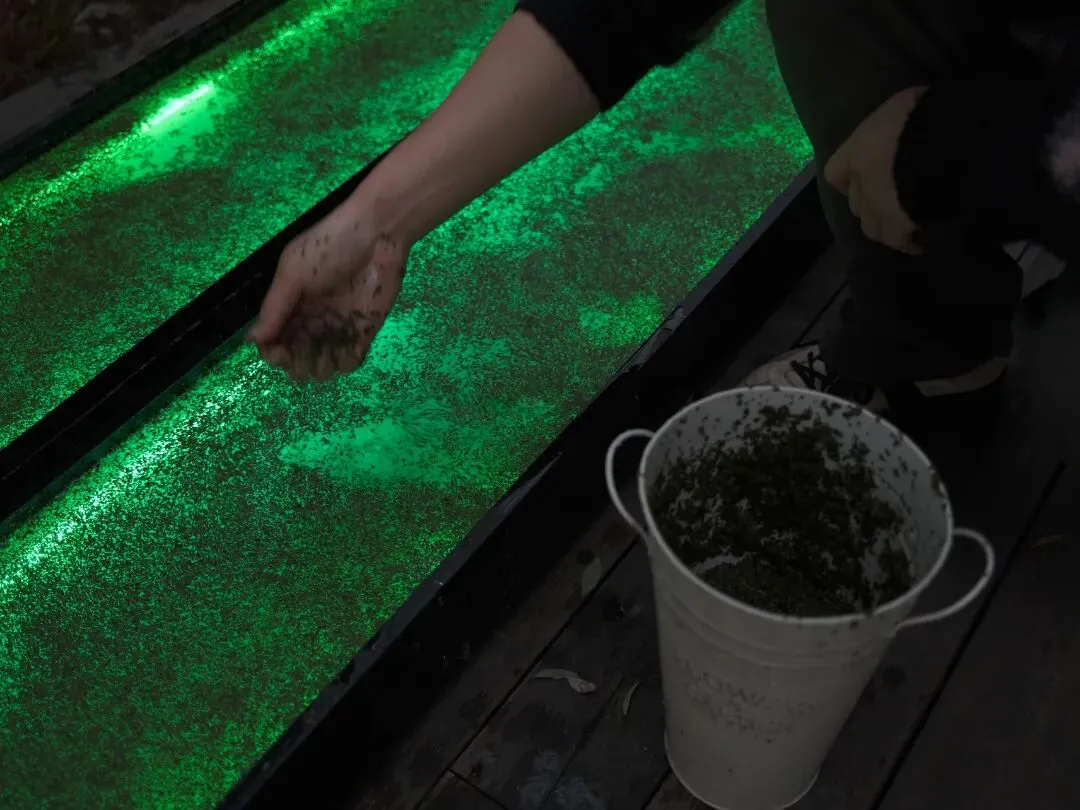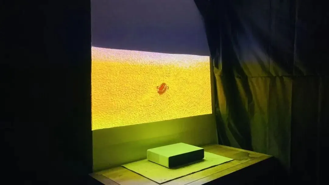 可以从装置底部观看光与浮萍的形态。