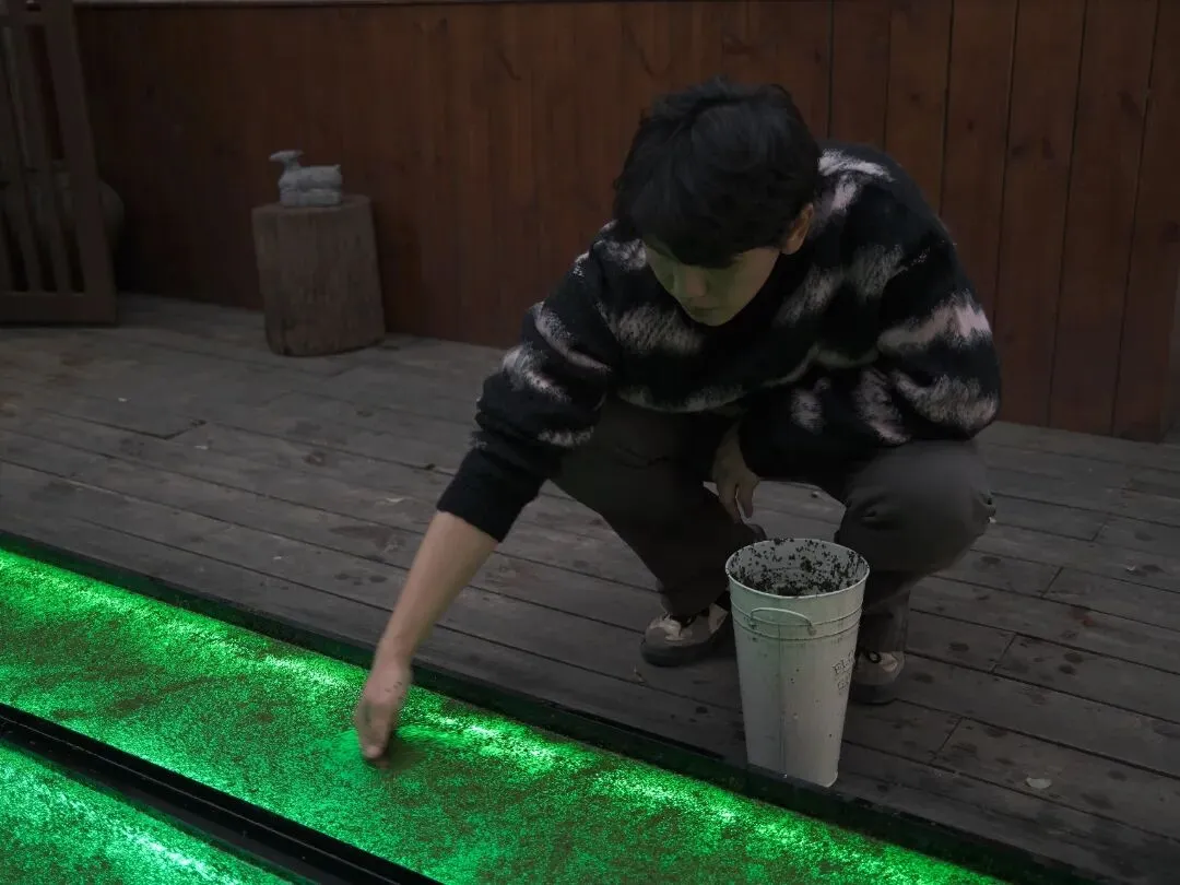 《阈限人-1》系列所使用的浮萍,是艺术家在