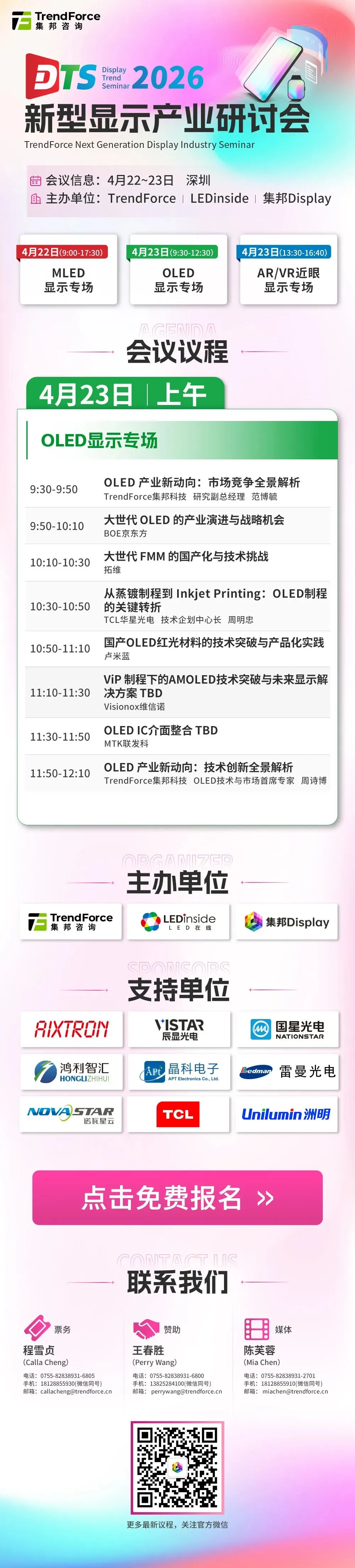 这条生产线主要用于制造面向常规IT设备OLED面板,通过使用8.6代玻璃基板,该生产线有望在ITOLED面板生产效率和成本控制方面取得优势。业内普遍认为,随着笔记本和部分平板设备加速采用OLED屏幕,相关面板需求未来将持续增长。
