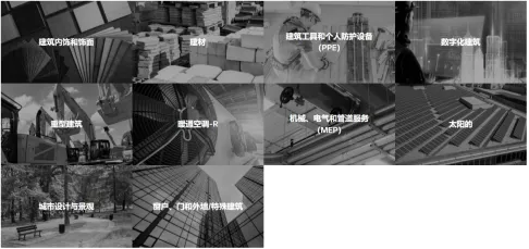 门窗和外墙/特殊结构:铝塑板、门、电梯、自动扶梯和门禁控制、机械、安装和工具、金属、钢和铝、屋顶、覆层和玻璃、特殊结构、窗户、门窗五金及配件、门窗和防晒系统等;