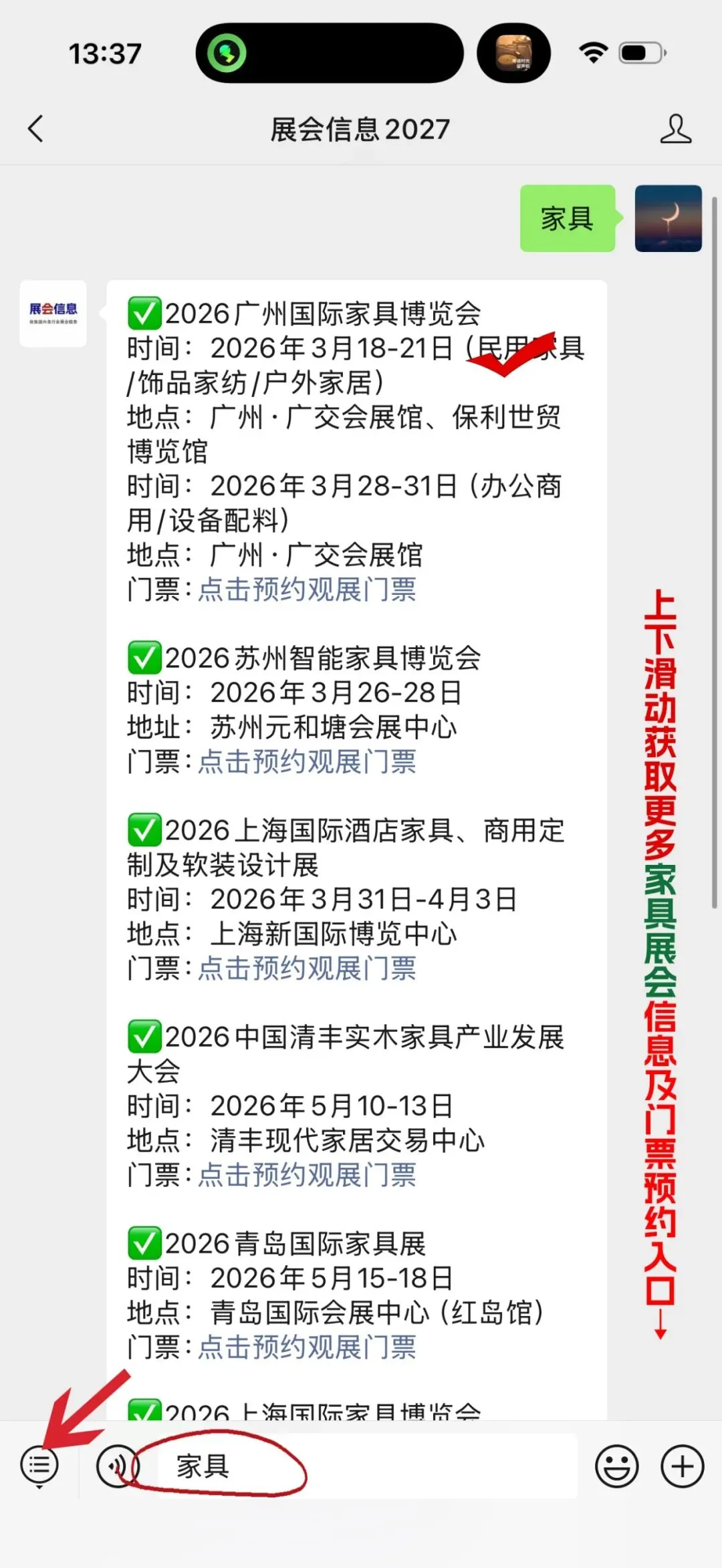 展会门票:关注【展会信息2027】微信公众号,在聊天对话框内回复【家具】获取门票预约入口