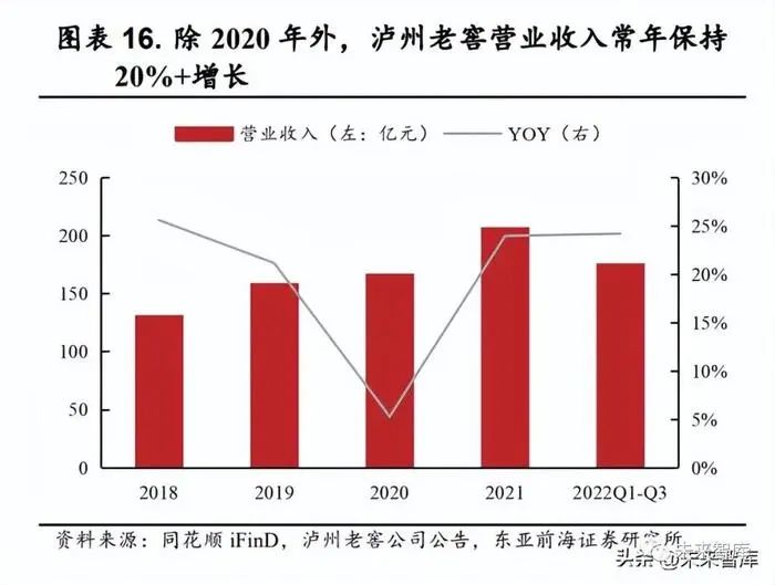 泸州老窖业绩增长稳定,势能持续向上。泸州老窖是浓香技艺的开创者,被誉为“浓香鼻祖”,几百年的历史文化和技术传承为泸州老窖的高质量发展筑牢根基。过去两年,白酒行业处于下行周期,但泸州老窖依然保持稳定增长。公司公告披露,泸州老窖连续5 个季度实现营收增速超过20%、连续 9 个季度实现净利润增速超过25%。多品系、年轻化深度布局,新兴增长极加速形成。从区域布局来看,公司已建成华北与西南两大基地市场,5 亿级省区超过 13 个。其中,2022 年前三季度盈利一举突破80亿大关,超过了 2021 年 79.56 亿元的全年净利润水平。同期,公司经营活动产生的现金流量净额也高达 63.12 亿元,同比大幅增长了59.56%。公司管理层表示:“泸州老窖正处于公司发展史上的最好阶段”。在经历了多轮行业周期考验之后,公司的产品质量、品牌形象、人才队伍等的竞争力不断攀升,公司有望在本轮周期强势崛起,谱写高质量发展新篇章。