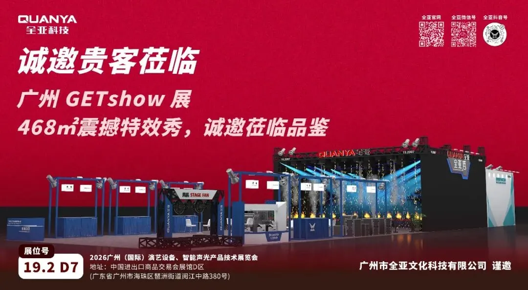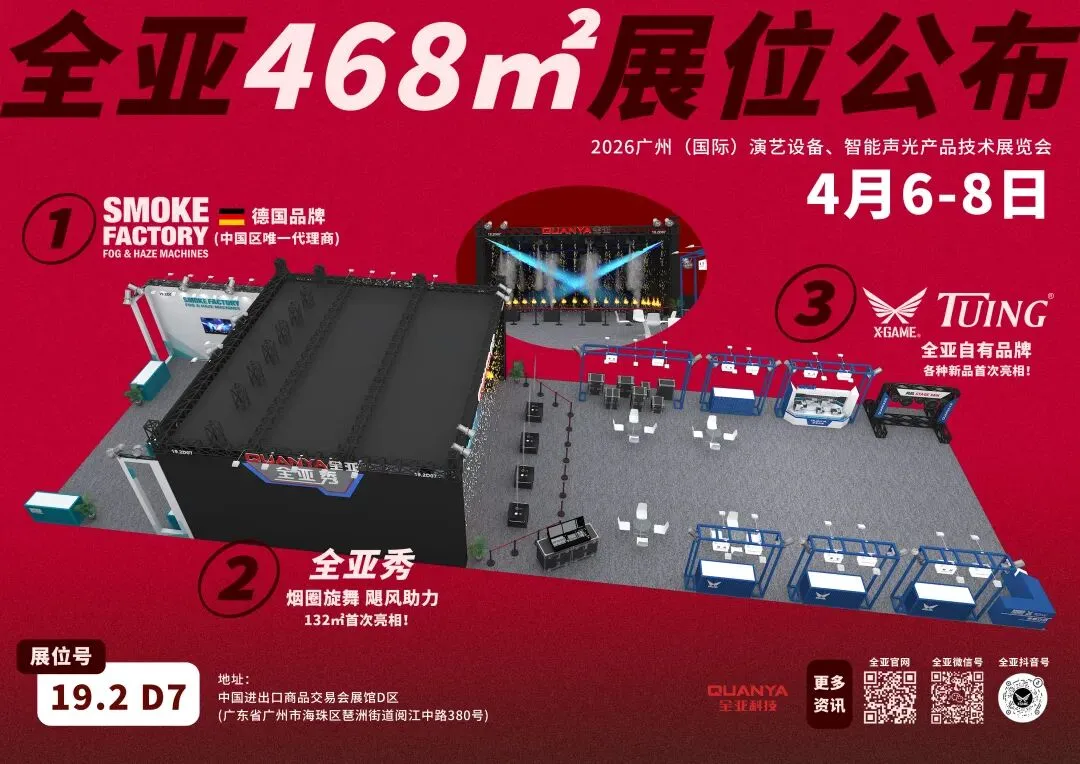 大家好!为了向大家展示全新一代烟雾特效设备与定制化场景解决方案,全亚科技携重磅新品与爆款经典款亮相“2026广州(国际)演艺设备、智能声光产品技术展览会”,诚邀各位莅临现场,近距离感受烟雾特效的无限可能,共探行业新风向,洽谈深度合作!