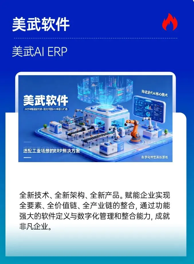 美武AI ERP全新技术、全新架构、全新产品。赋能企业实现全要素、全价值链、全产业链的整合,通过功能强大的软件定义与数字化管理和整合能力,成就非凡企业。