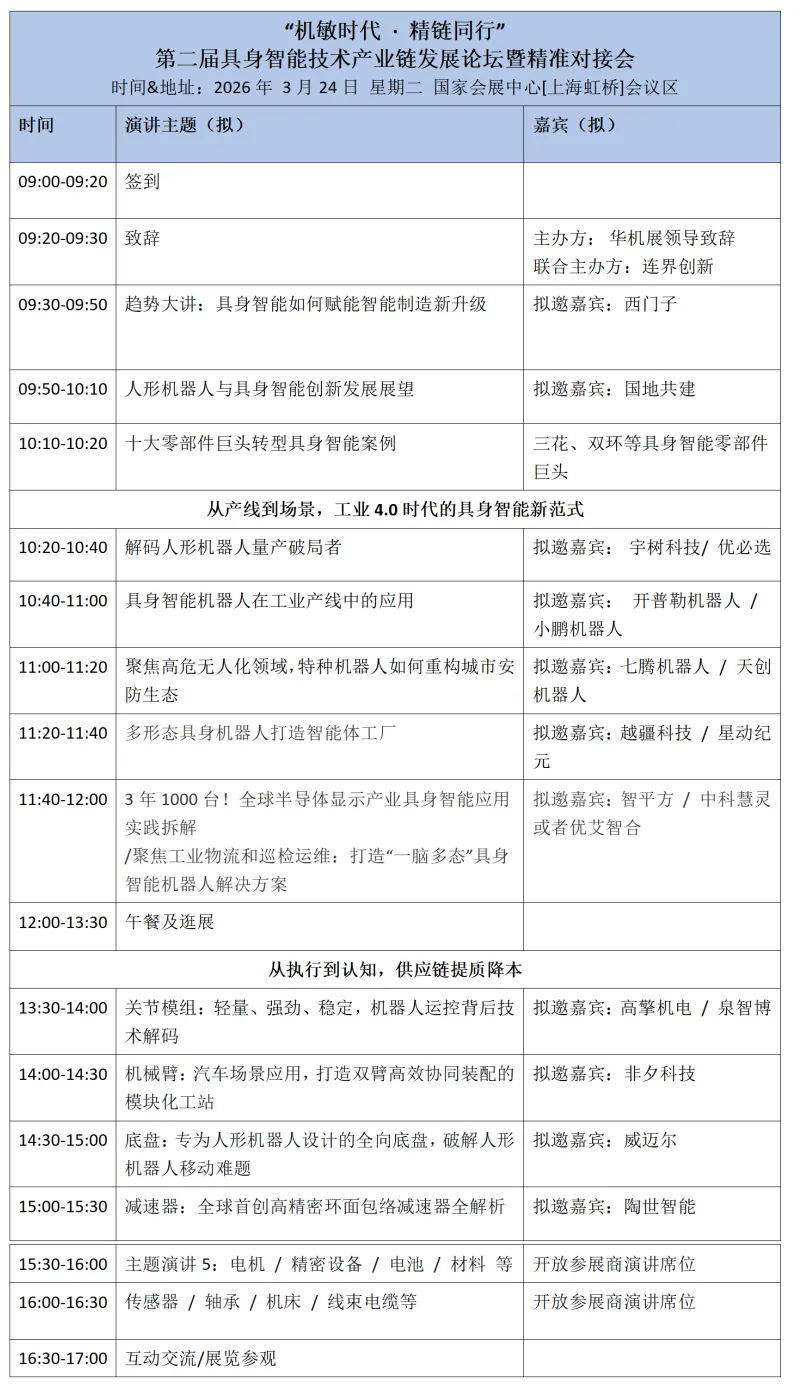 3月23-24日,第二届具身智能技术产业链发展论坛暨精准对接会,将在上海虹桥国家会展中心举办。