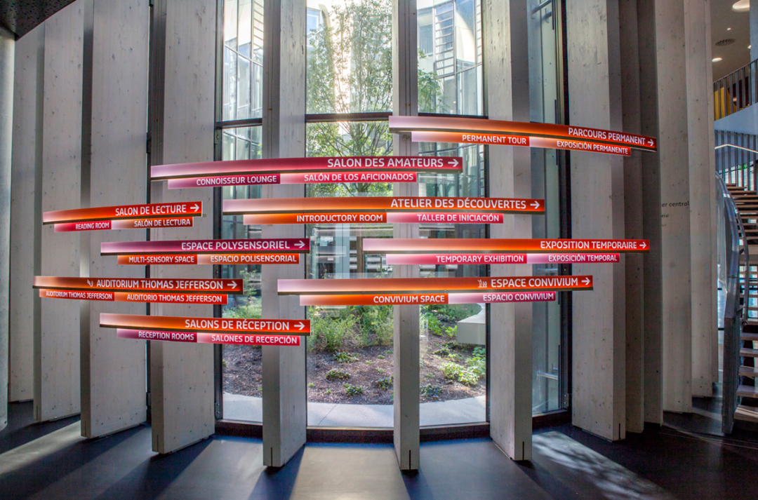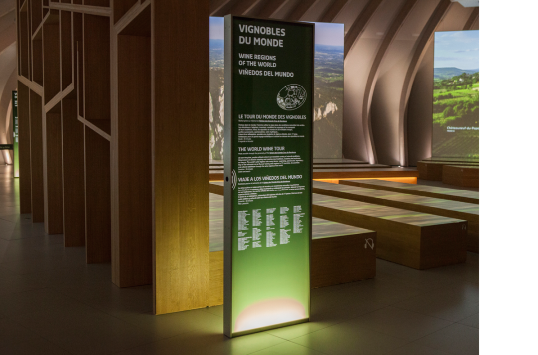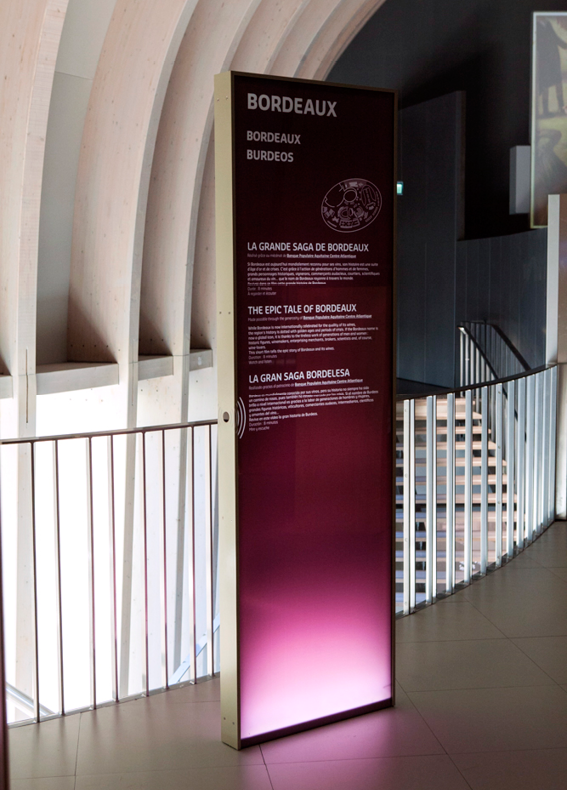 葡萄酒文明之城位于法国波尔多,是葡萄酒文化旅游中心,设有品酒室、礼堂、主题餐厅、衍生品商店和展厅,autobus imperial公司受邀为其进行导视系统设计。