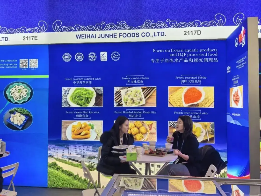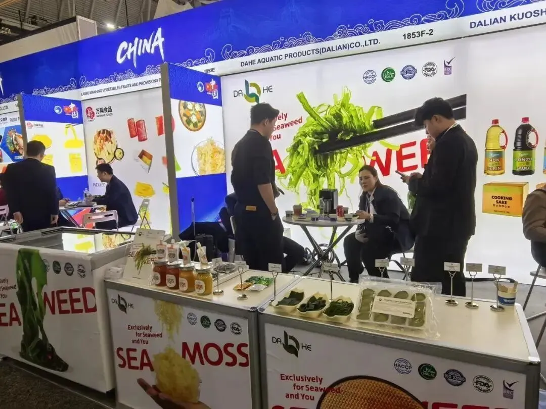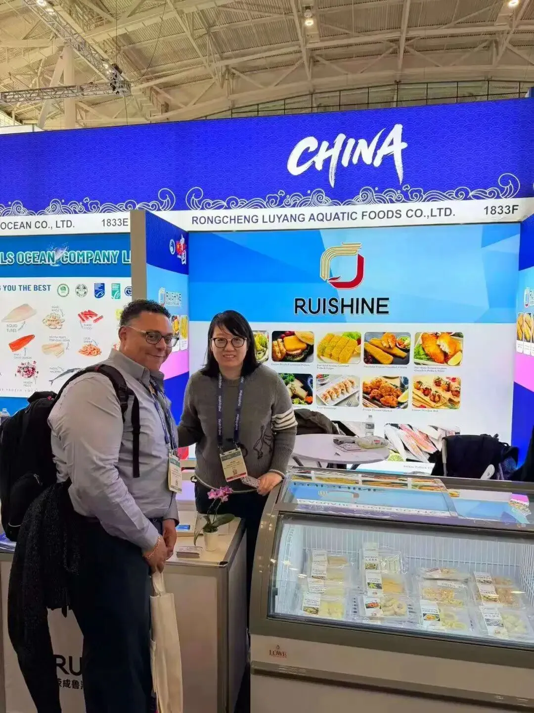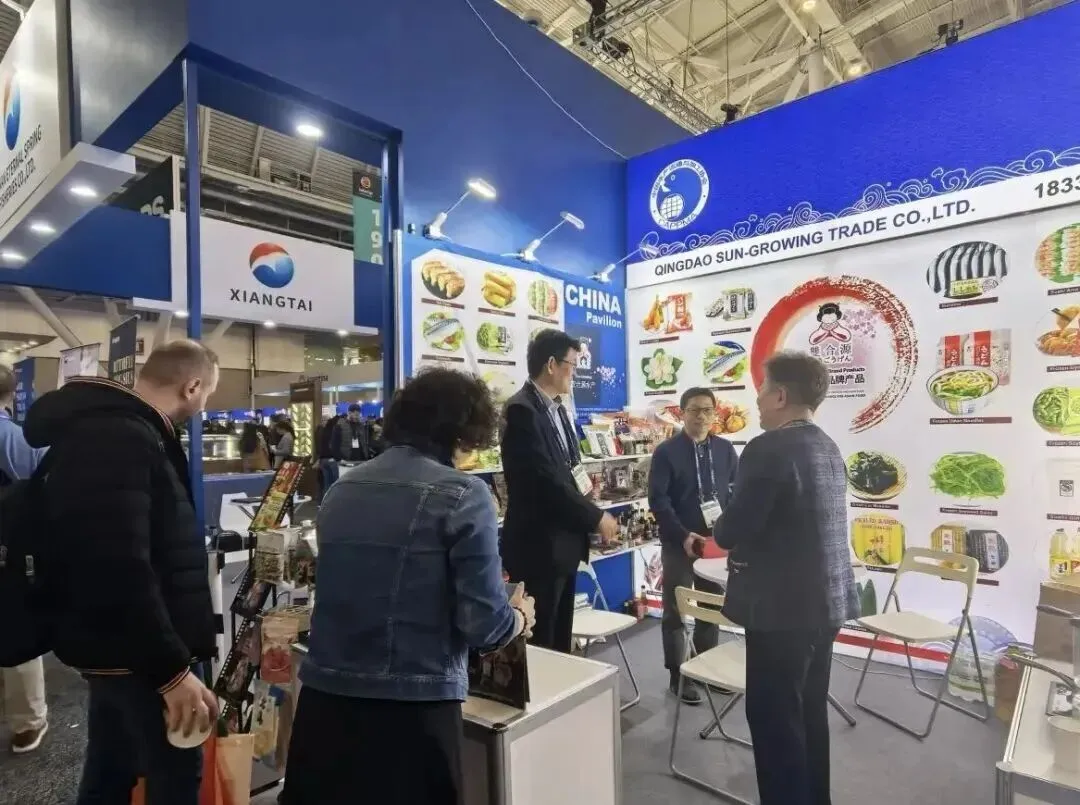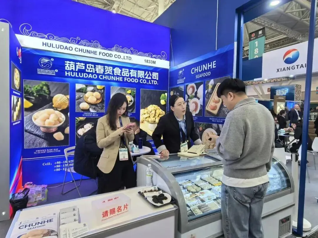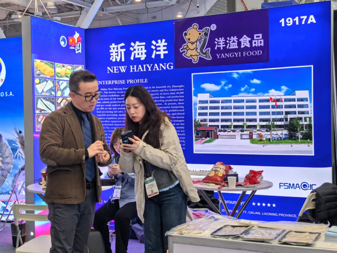 本届展会中,协会精心组织了来自山东、辽宁、海南、福建、广东、江苏、浙江、广西、北京、四川、云南等全国11个省(区、市)的60多家优质企业、近百名企业精英人士,以“中国水产国家展团/出访团”形式集中亮相,其中参展规模在所有海外国家展团中继续稳居首位,充分展现了中国水产行业的雄厚实力与蓬勃生机。今年,参展企业携自身核心产品、创新技术精彩亮相,全方位展示中国水产加工、养殖领域的高质量发展成果,凭借优质的产品品质、先进的生产技术和完善的供应链体系,赢得了北美及全球采购商的广泛关注与高度青睐,为中国水产企业拓展北美市场、深化国际合作搭建了坚实平台。