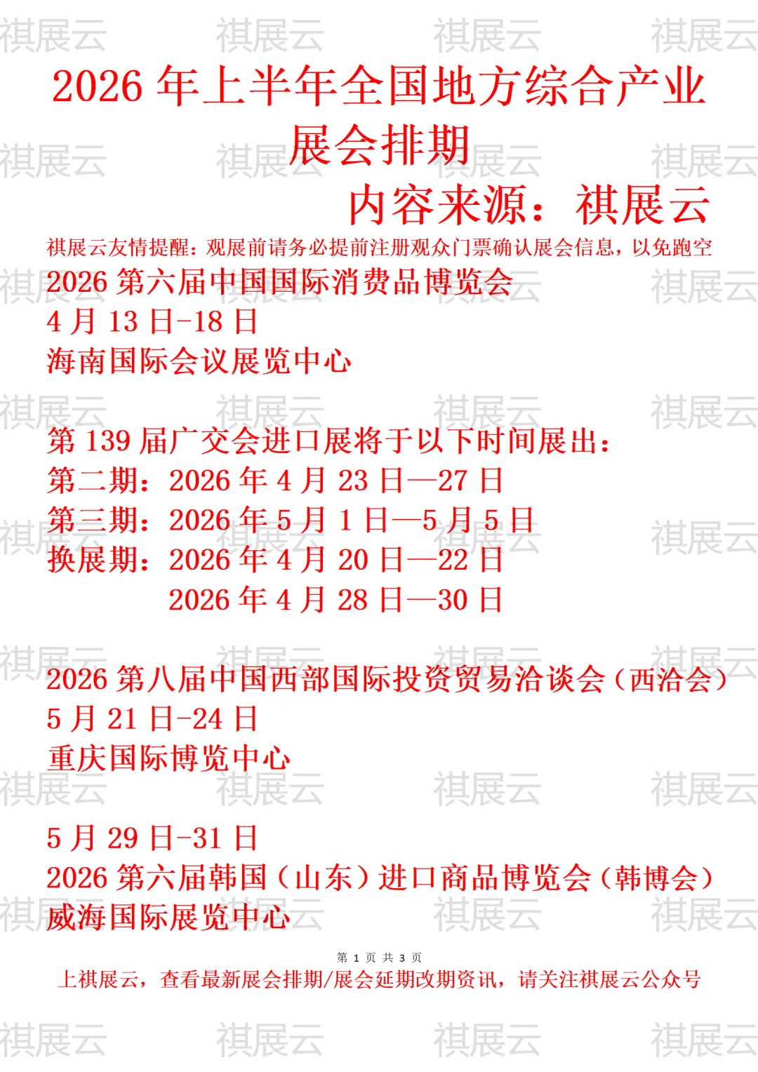 会展资讯丨全国地区国家级展会2026年上半年展会时间表