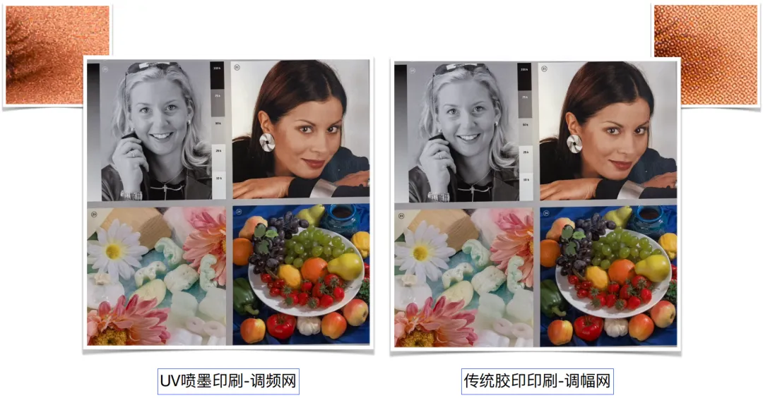 图3是在柯尼卡美能达展位上拿到的一套经过色彩管理后的UV喷墨印刷(左)和传统胶印(右)的对比样张。用肉眼观察左右样张可以看到,二者在不用放大镜观察的前提下,色彩完全一致,而这个效果就是通过色彩管理得到的。为什么数字印刷要进行色彩管理呢?因为数字印刷是印刷大家族的一部分,是传统印刷的一个补充。如果印刷厂用数字印刷打样或加工小的订单,但印刷效果同正式印刷时的大订单色彩不一致,或者说大订单最后追不上数字打样的效果,那么数字印刷就失去了自身的意义和价值。