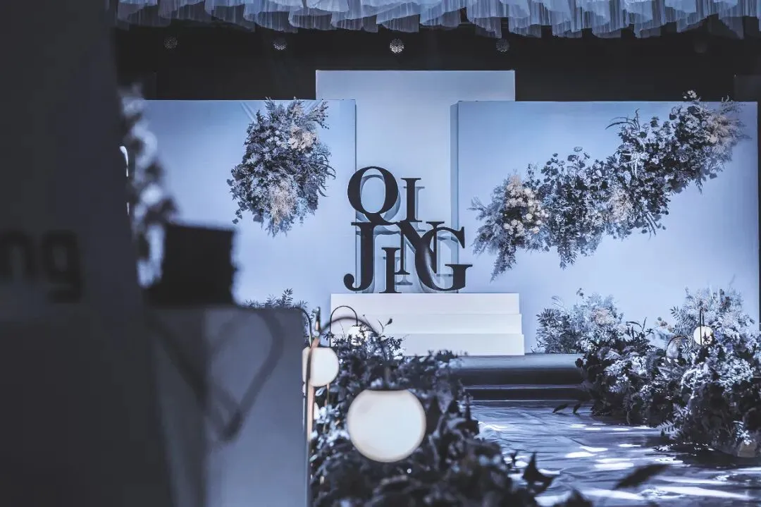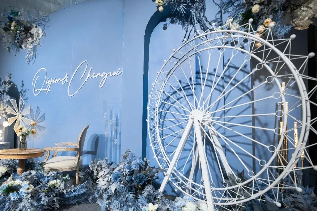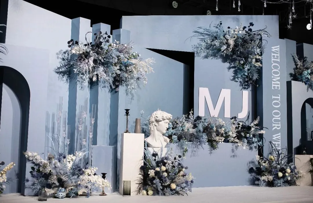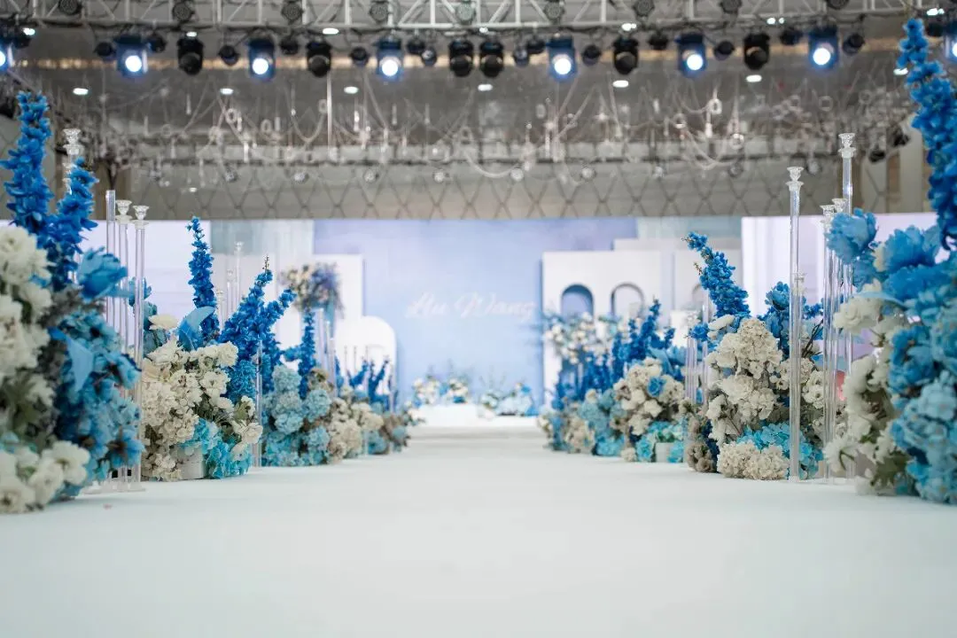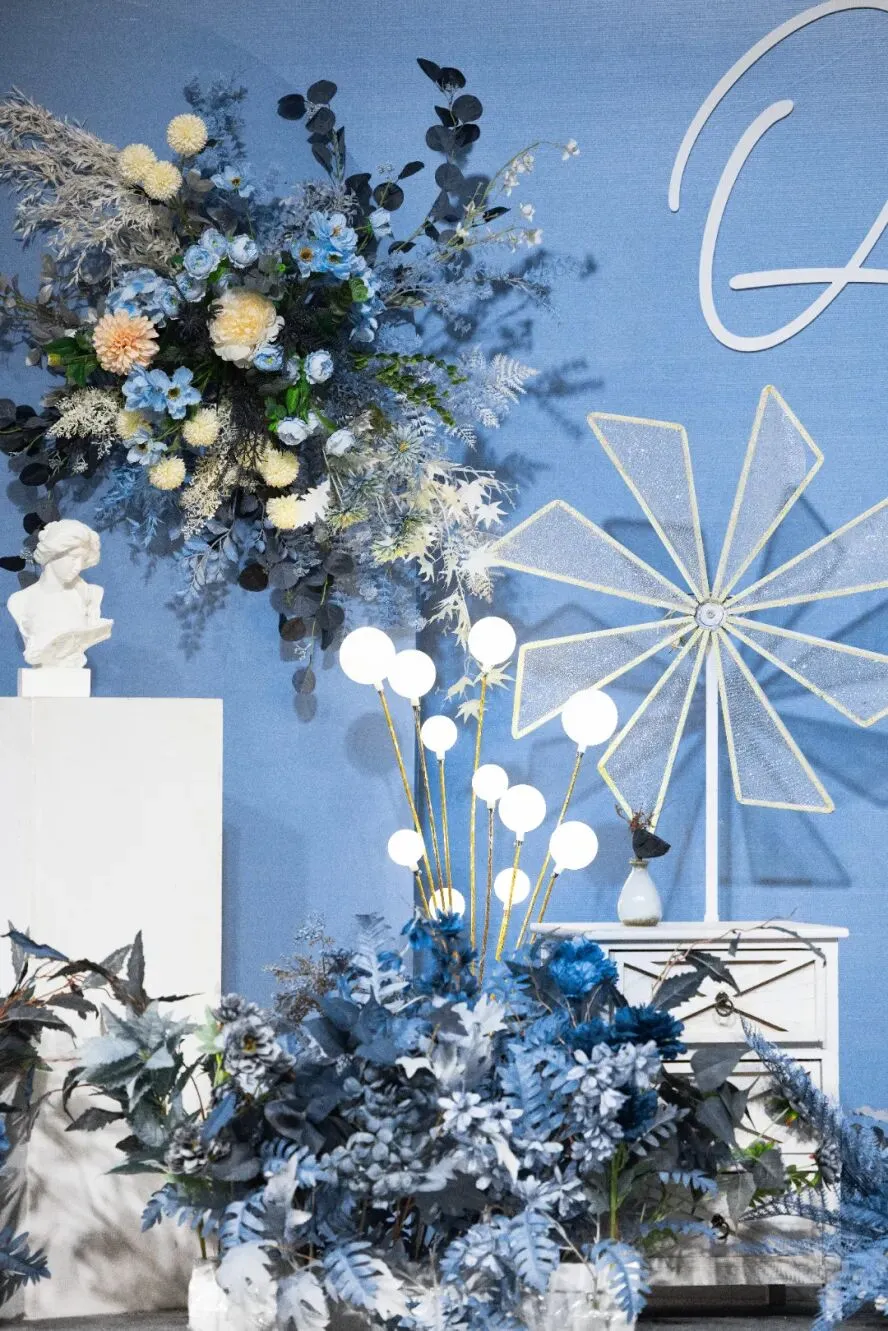 一场雾霾蓝婚礼,把爱藏进每一处细节,高级又耐看。
