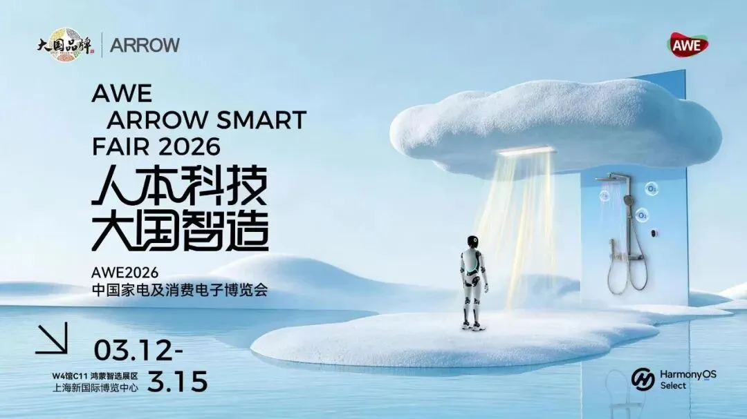 作为全球三大家电与消费电子领域的重要盛会,AWE2026不仅是新品发布与技术展示的舞台,更被视为全球家电产业发展趋势的重要风向标。在本届展会的鸿蒙智选展区核心动线上,ARROW箭牌家居集团携手鸿蒙智选带来了箭牌智能花洒智雨精灵与箭牌智能浴霸雷达浴霸等智能卫浴新品,并与AITO问界汽车同台亮相。一侧是被称为“车轮上的家”的智能汽车,一侧则是正在升级为智慧空间的浴室场景,生动呈现出当智能化浪潮席卷各类生活空间时,卫浴空间也正在从单一的功能区域,升级为承载未来人居体验的重要场景。