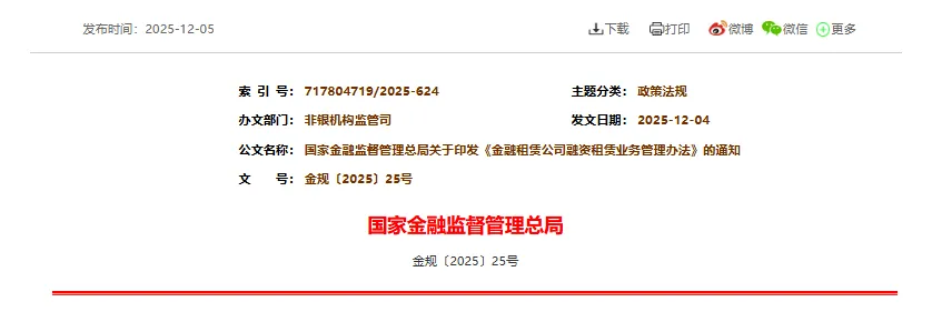 以下为《金融租赁公司融资租赁业务管理办法》(金规〔2025〕25号)原文,关于重要变化与解读也可参考《重磅!金规25号文发布,73次提及租赁物!》: