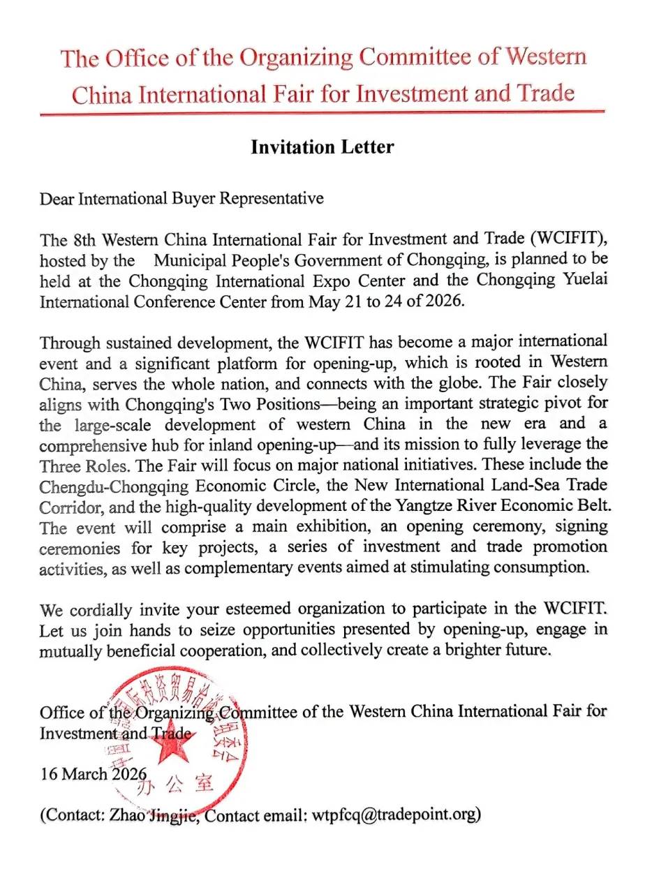Against the backdrop of the deepening implementation of the Western Development Strategy, the accelerated construction of the Chengdu-Chongqing Economic Circle, and the new development paradigm of dual circulation at home and abroad, the 8th Western China International Fair for Investment and Trade (WCIFIT) will be grandly held from May 21 to 24, 2026, at the Chongqing International Expo Center.