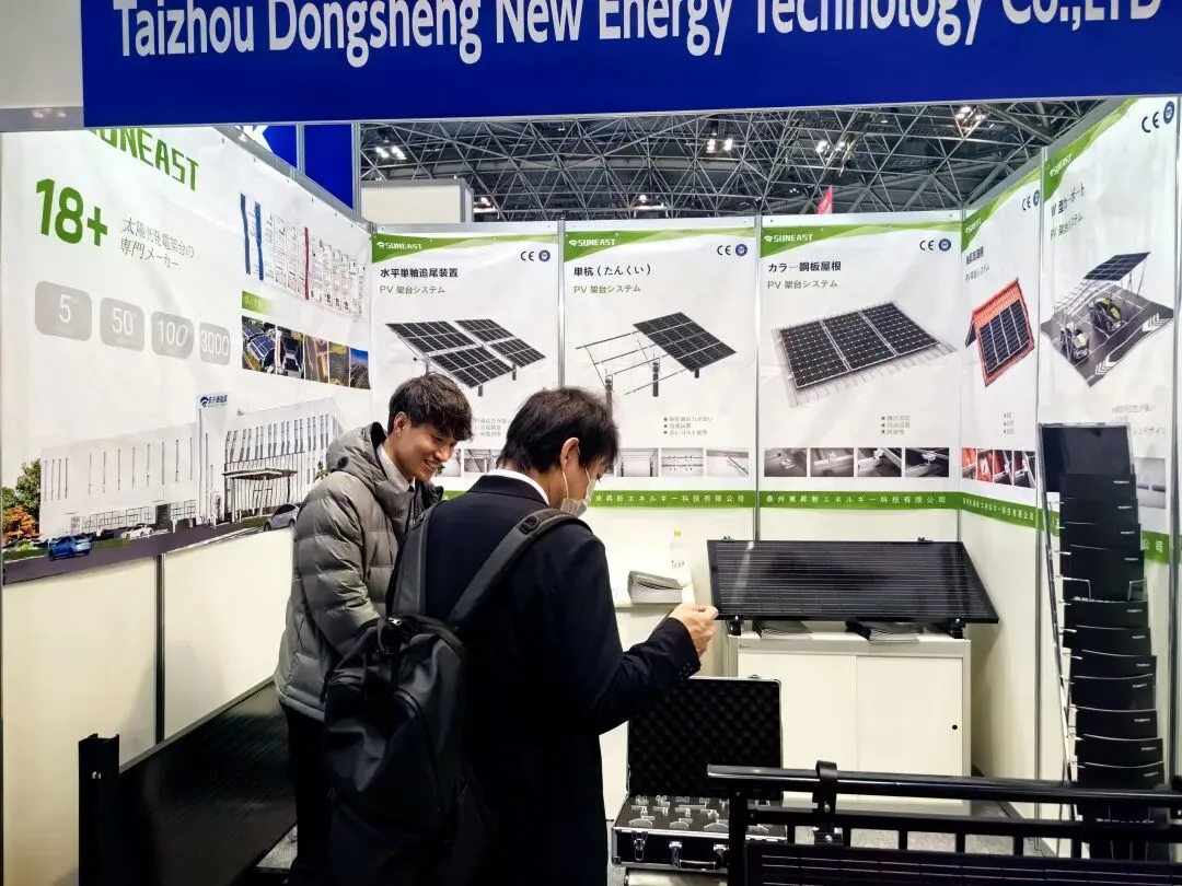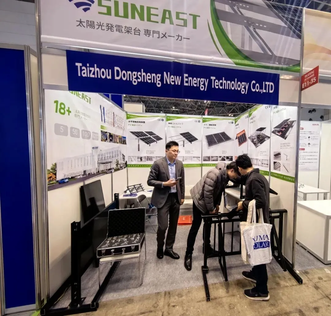 本次参展,东升新能源聚焦核心优势、深耕细节呈现,全方位展示光伏支架领域技术沉淀与产品硬实力——从成熟稳定的传统优质光伏支架系统,到贴合日本市场需求的定制化解决方案,每一款产品均经过严苛检测、层层把关。