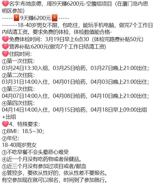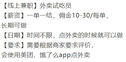 此信息来自网络,请联系对应负责人具体沟通了解,谨慎分辨判断)平台提示:以任何形式收费的岗位都不要做!如涉及使用本人资金账户支付,请勿参与!若实际工作内容与岗位描述不符合,请勿参与!