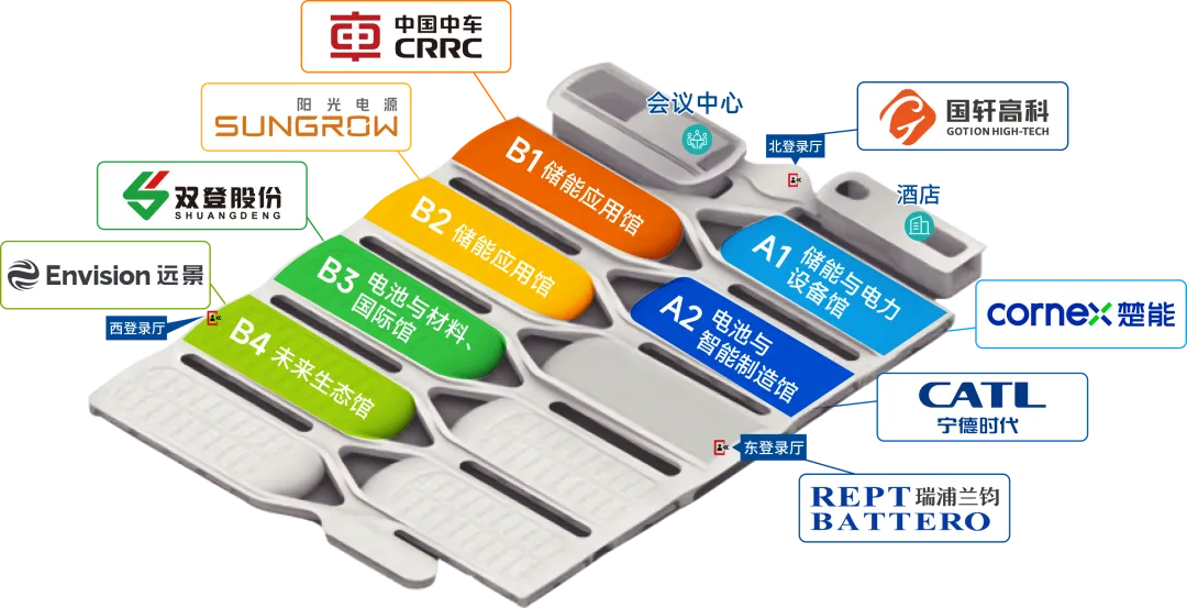 亿纬锂能(A1C01)、欣旺达(B1C01)、楚能新能源(A1C08)、瑞浦兰钧(B2C04)、江苏海基新能源(B2C03))、融捷能源(A2B06)、鹏程无限新能源(A1B05)、中储国能(北京)(A1B07)、上海川承储能(B1B02)、宿迁时代储能(B3C01)、北京泓慧国际能源(A2A08)、清源合一(杭州)(A1D13)、坎德拉(深圳)新能源(A2B09)、今朝时代(B1C09)...