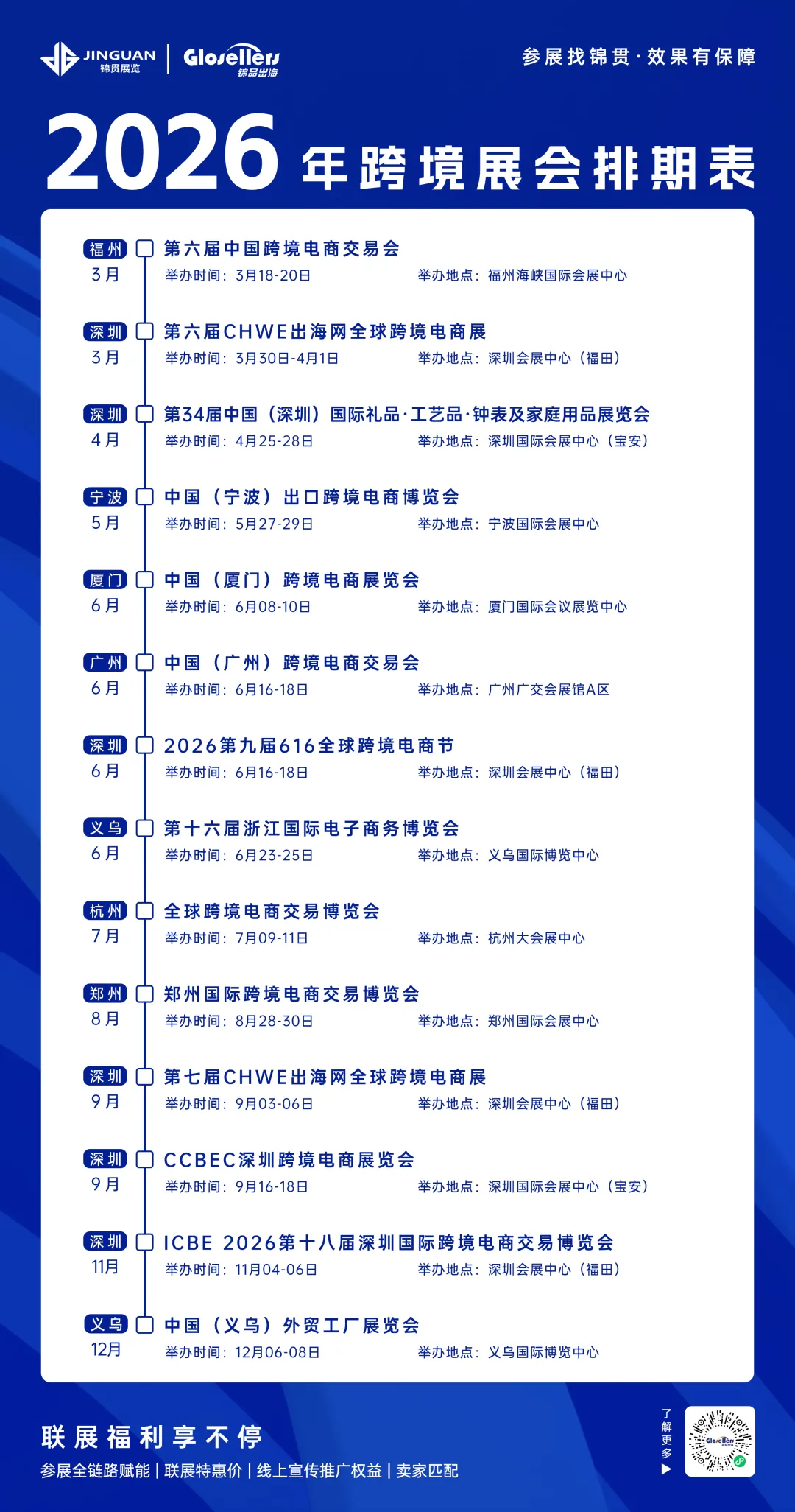 与锦贯展览合作,享专属福利,包括但不限于:专人对接、联展特惠、曝光权益、商家对接、福利礼包等。