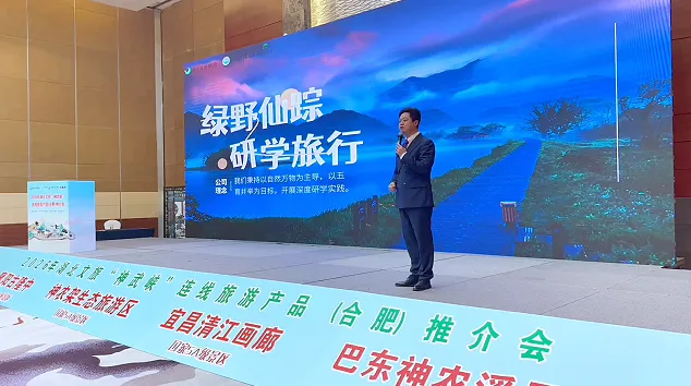 在旅游资源推介环节,神农架、宜昌、襄阳三地代表依次登台,通过图文并茂的形式生动展现了各自景区的精华。其中,神农架重点推介了“华中屋脊”的四季风光与生态秘境,神农架绿野仙踪研学公司还带来了特色研学课程,进一步丰富了“神武峡”线路的产品体系。