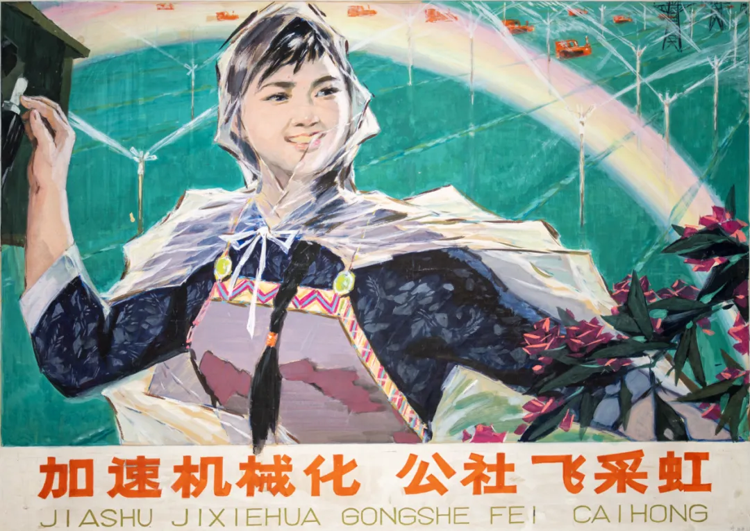 《加速机械化 公社飞采虹》 李醒韬 62cm × 89cm 宣传画·水粉画 20世纪70年代