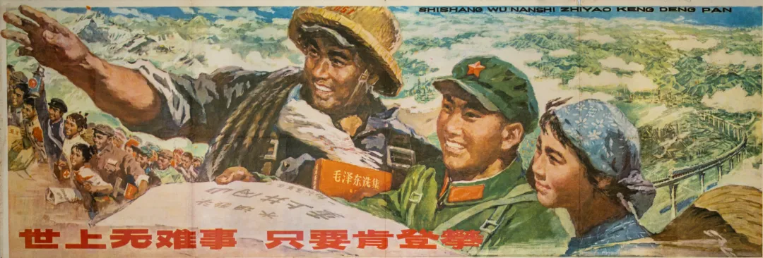 《世上无难事 只要肯攀登》 李醒韬、梁照堂 34cm × 104cm 宣传画·水粉画 20世纪70年代