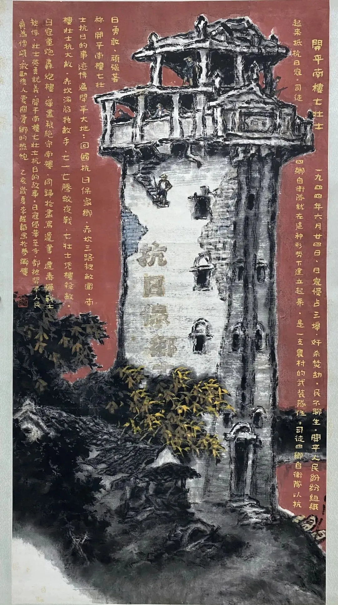 《开平南楼七壮士》 李醒韬 180cm × 90cm 中国画 1995年