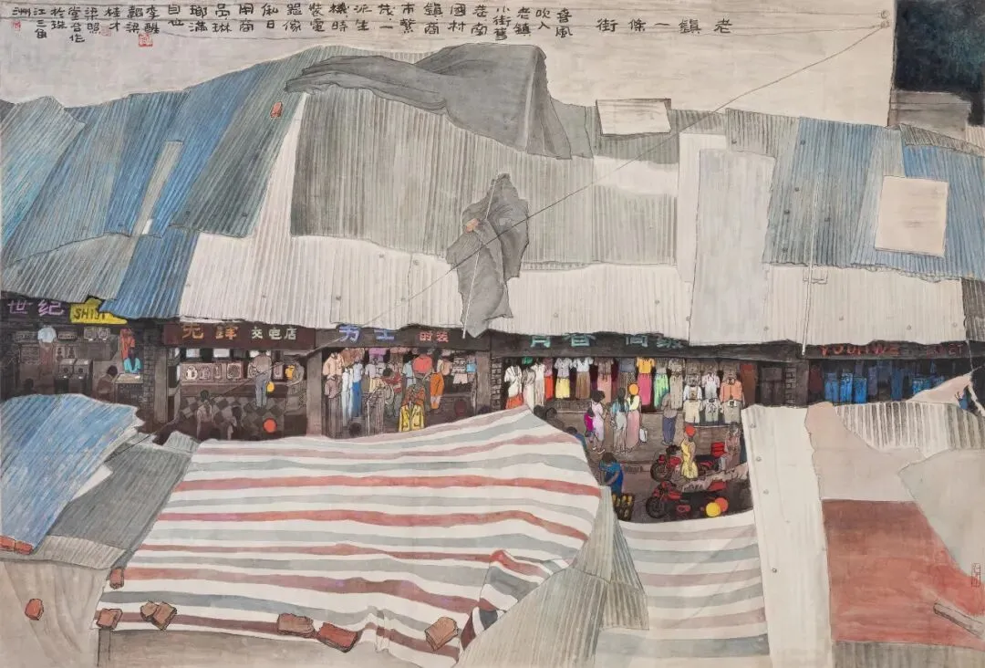 《老镇一条街》 李醒韬、梁桂才、梁照堂 119cm × 175cm 中国画 年代不详
