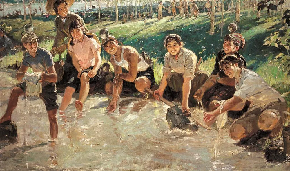 《我爱万泉河》 李醒韬、梁照堂 106cm × 180cm 油画 1972年