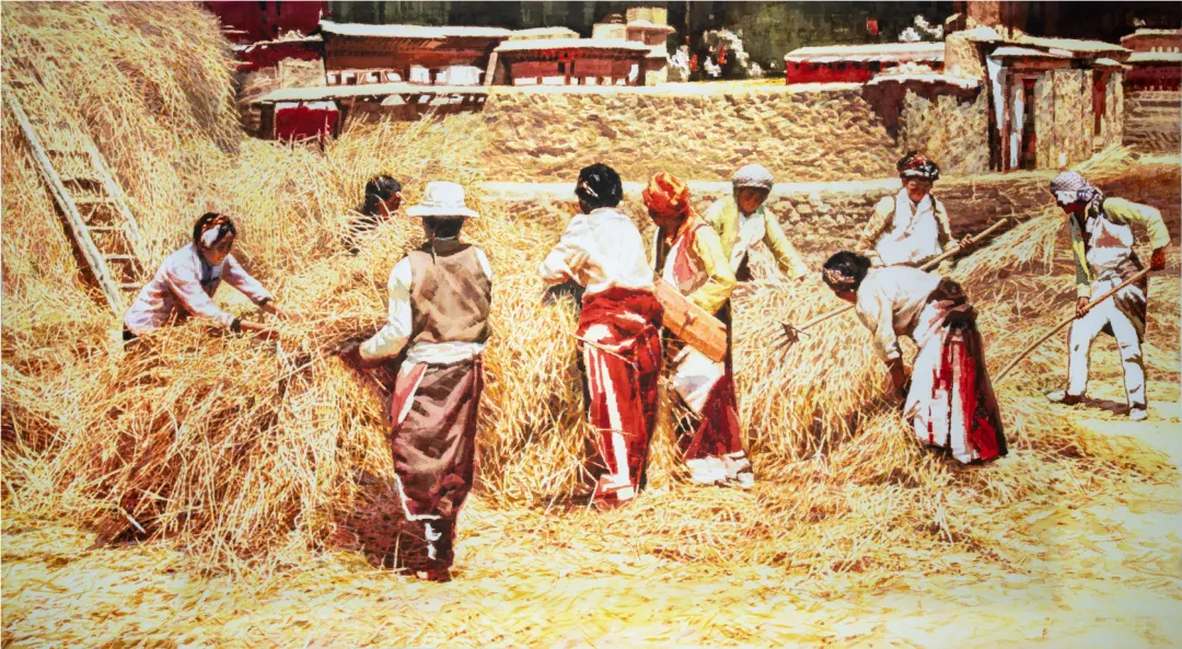 《金色的雍布拉康》 李醒韬 83cm ×155cm 水彩画 1999年