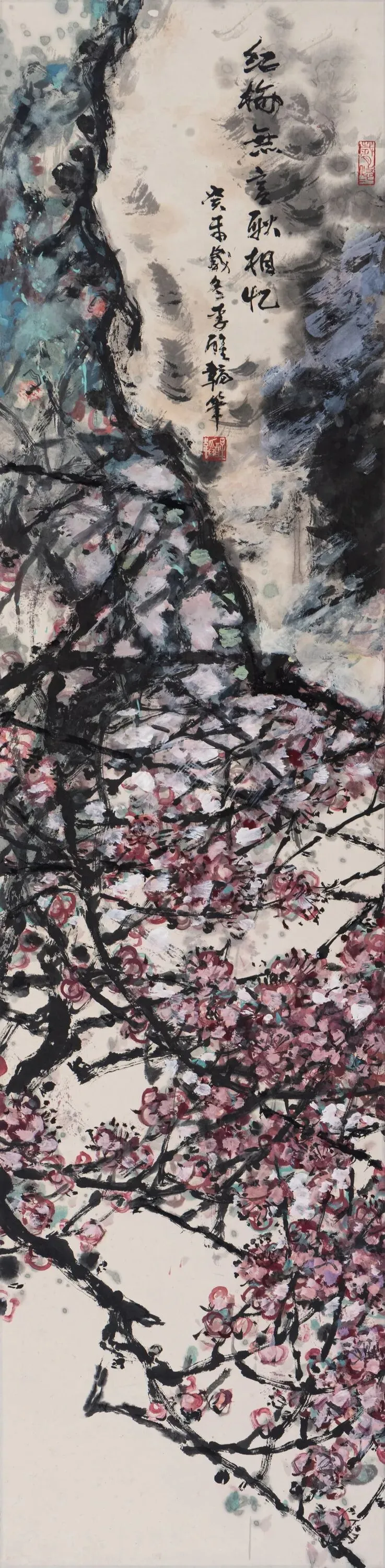 《红梅无言耿相忆》 李醒韬 137cm × 34cm 中国画 2003年