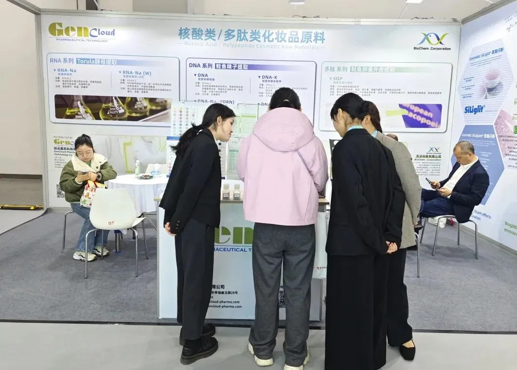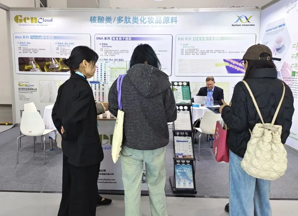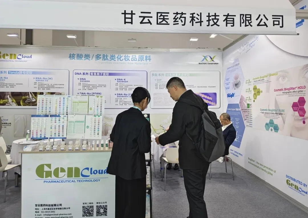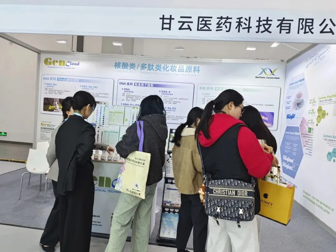 本届展会,甘云医药携多款核心美妆原料重磅参展,涵盖鲑鱼提取PDRN、酵母提取RNA、鲑鱼卵巢外皮水解肽SOP及SiLi炫彩金葱粉等特色原料,全方位展示高品质原料实力,为美妆产品研发与升级提供专业优质解决方案。