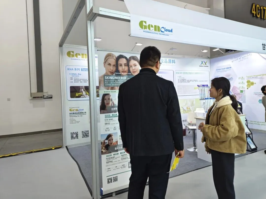 开展首日,甘云医药展位便访客络绎不绝、现场人气高涨。工作人员以专业严谨的态度,为到访的品牌方、行业同仁细致讲解各类原料优势、应用场景与合作模式,精准回应品质管控、稳定供货、研发适配等核心问题,现场沟通高效顺畅,不少客户当场达成初步合作意向。