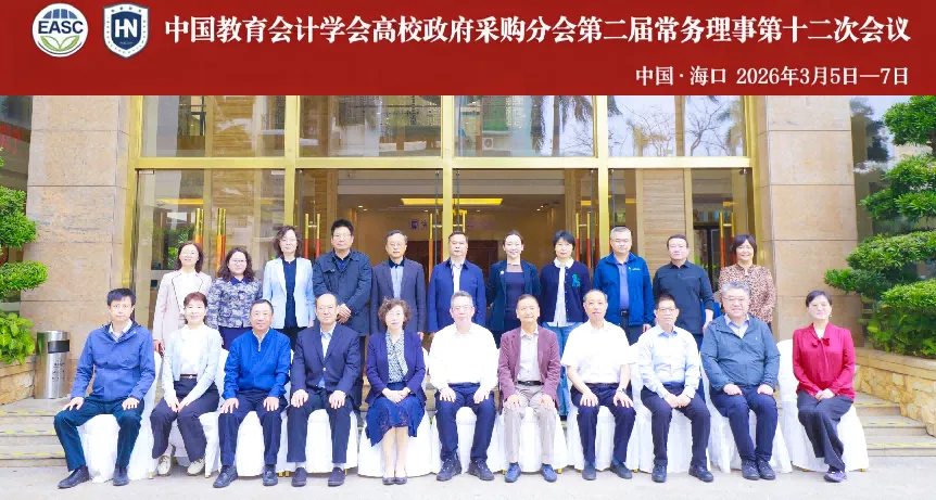 2026年3月6-7日,中国教育会计学会高校政府采购分会在海南大学国际学术会议中心召开第二届理事会第十二次常务理事会议。中国教育会计学会会长陈希原、副会长兼秘书长郝丽霞受邀参加会议,中国教育会计学会副会长、高校政府采购分会会长马建斌、海南大学党委常委、副校长邹勇华和分会常务理事共计20余人参加会议。分会副会长李磊主持会议。