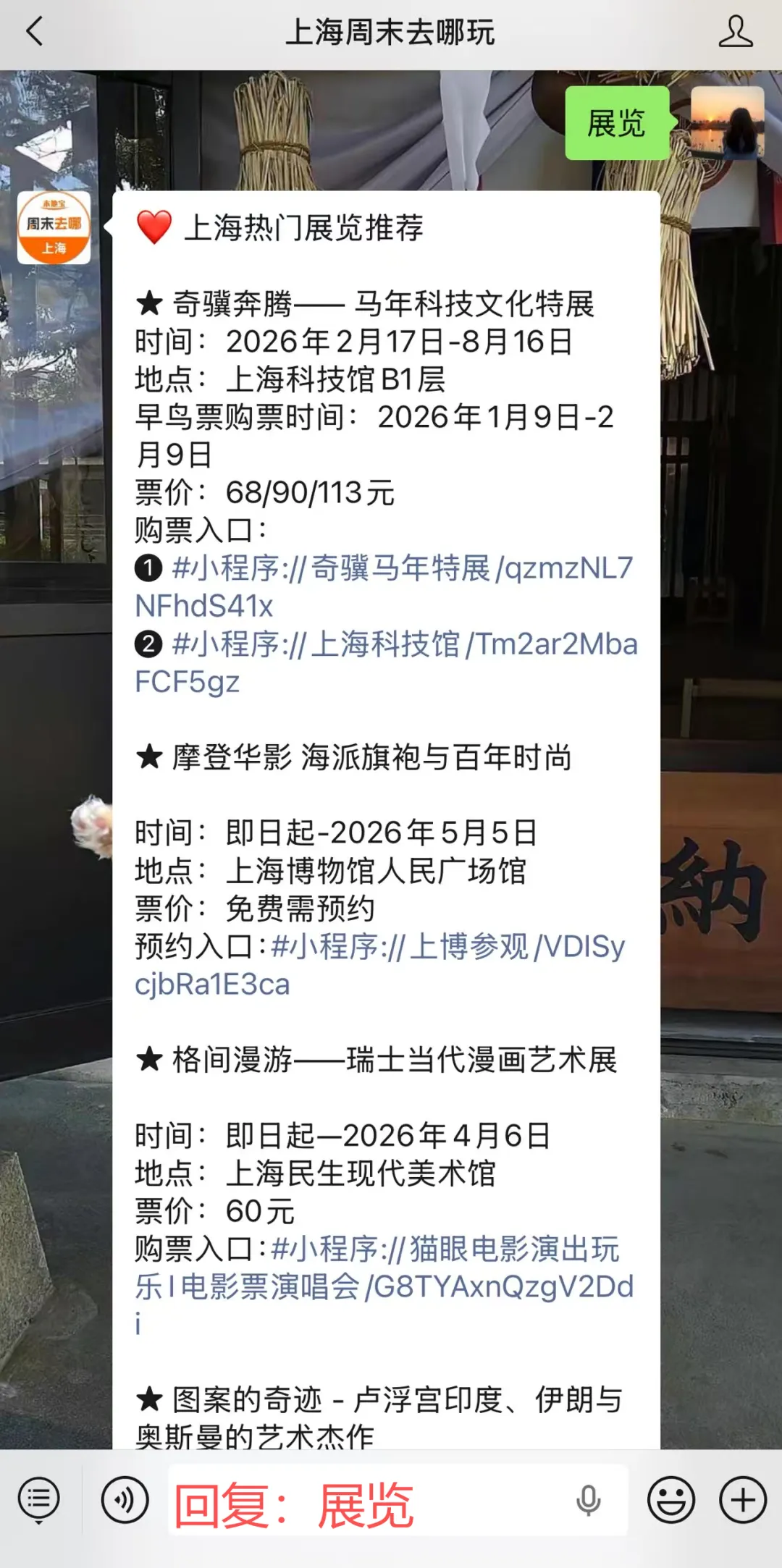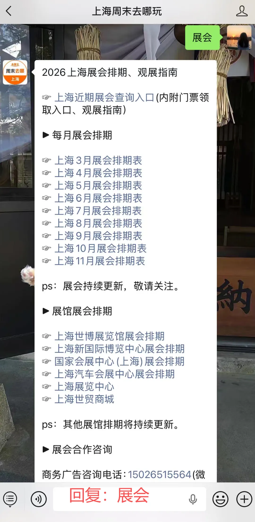 聊天对话框发送关键词【展会】【展览】获取