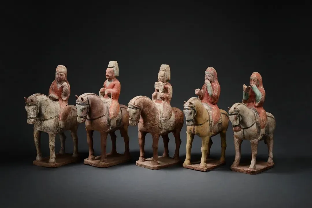 彩绘鼓吹骑俑(5件)